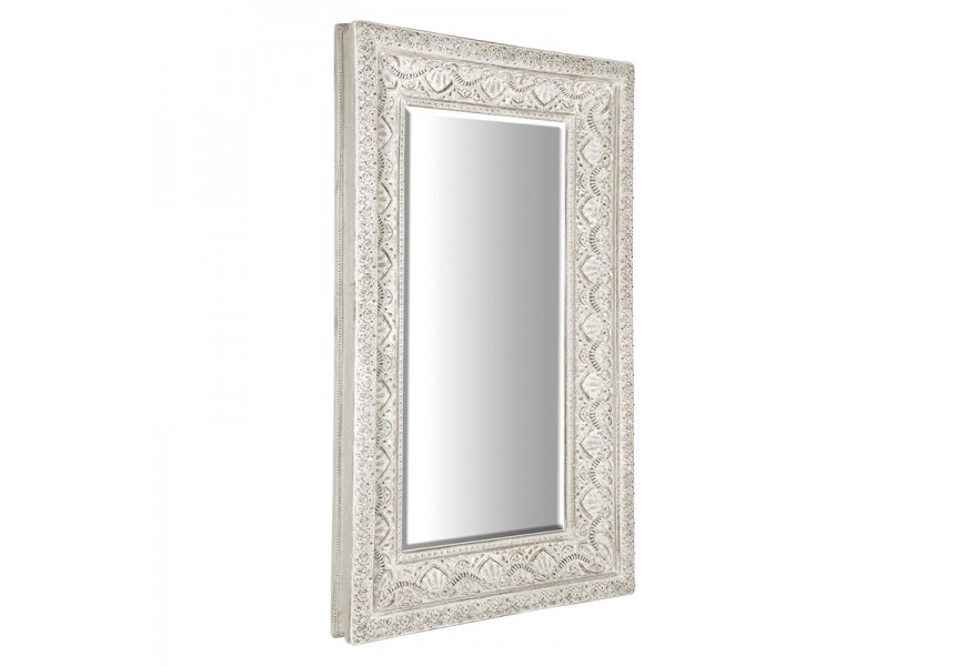 Provensálske nástenné zrkadlo Venice s ozdobným rámom bielej farby 233cm
