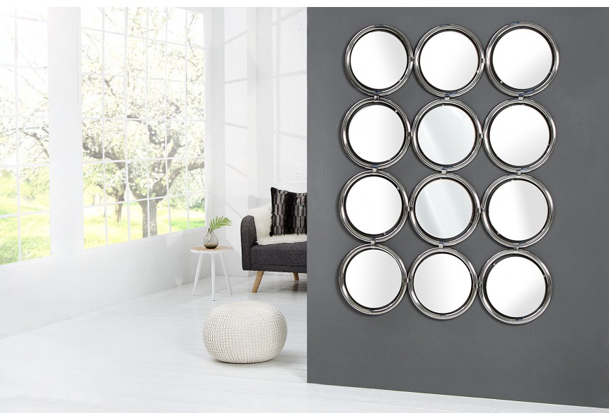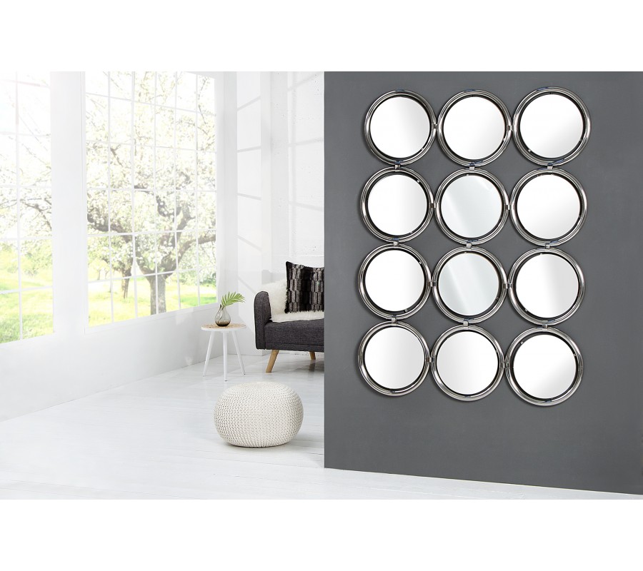 Luxusné nástenné zrkadlo Circle 130cm je charakteristické svojim vzhľadom. Zrkadlo sa skladá z viacerých kruhov, ktoré vytvárajú zaujímavú kompozíciu, ktorá vytvorí neopísateľnú atmosféru vo Vašom domove. Zrkadlo môžete zavesiť vodorovne ale aj zvislo. Ak vám nevyhovuje strieborný rám, zrkadlo máme aj v zlatom prevedení.