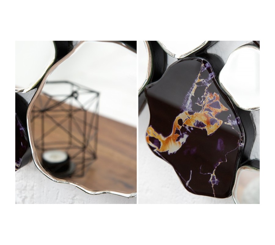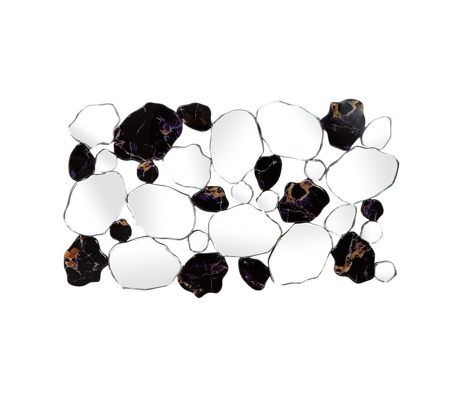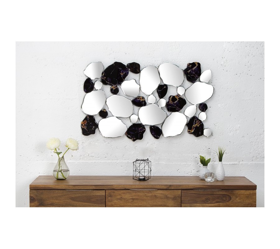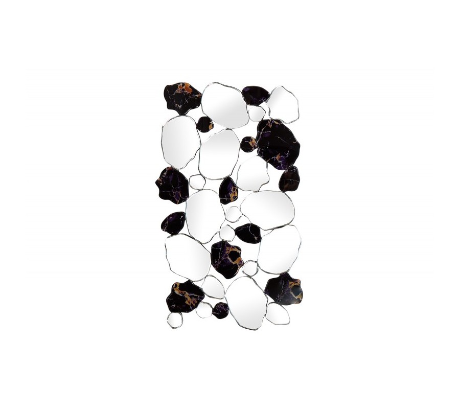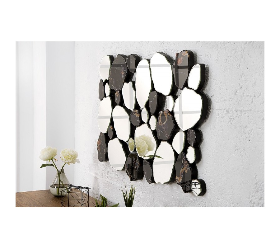 Dizajnové zrkadlo Marble je veľmi originálnou dekoráciou hodiacou sa do moderne zariadených priestorov. Kombinácia čiernej mramorovej štruktúry so zrkadlovými časťami pôsobí retro avšak tvar a celková forma budia moderný dojem. Zrkadlo je možné zavesiť vertikálne aj horizontálne.