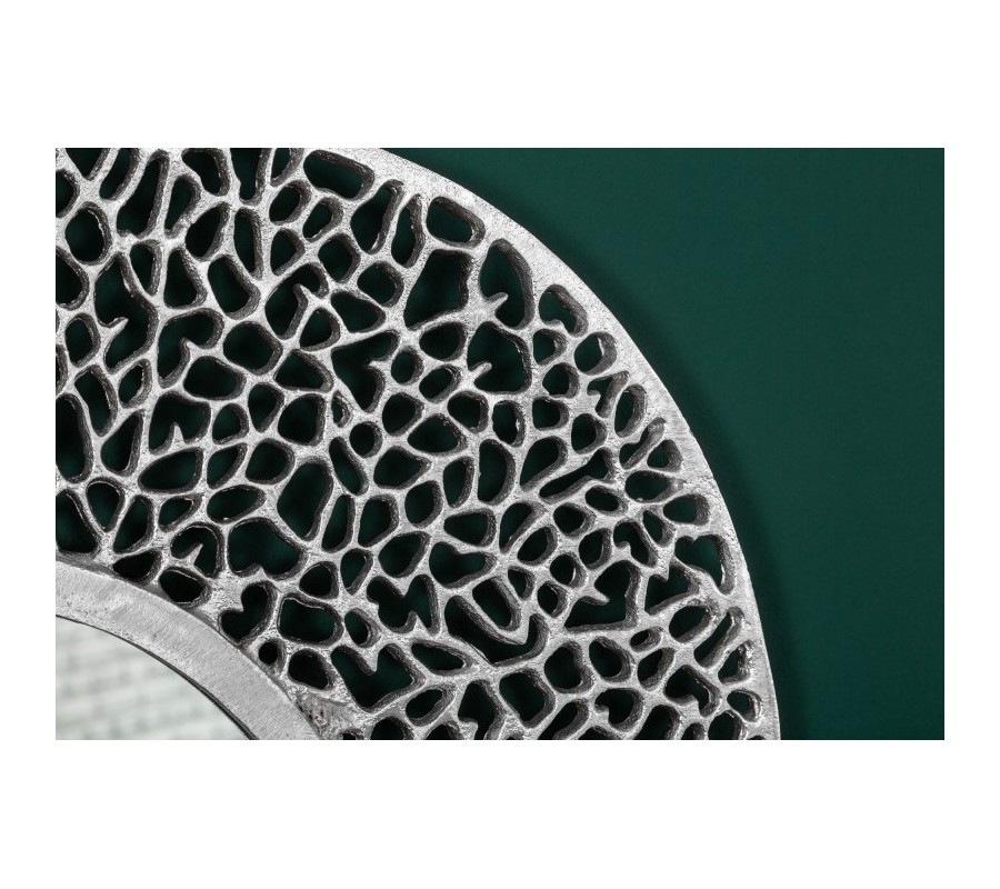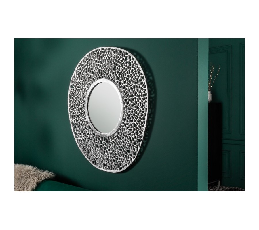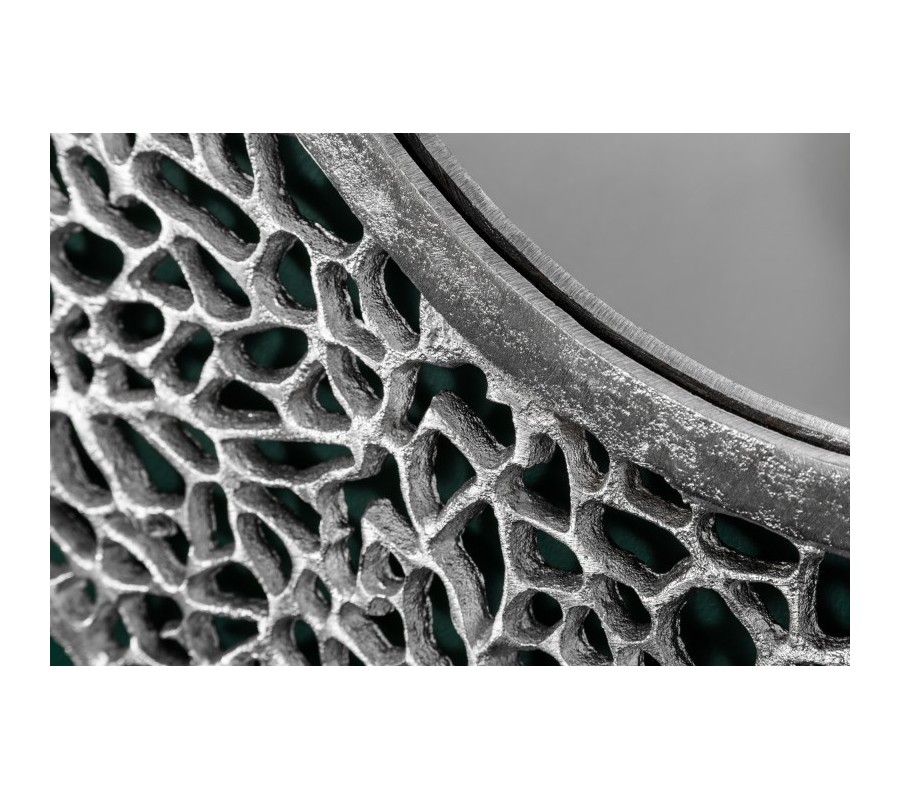 Štýlové zrkadlo Girvan je vkusným doplnkom do art-deco či moderných interiérov. Vynikne predovšetkým na tmavších stenách vo výrazných farbách vo vašich obývačkách, spálňach či chodbových priestoroch. Zaujme najmä svojím dizajnovo štruktúrovaným rámom z kovu, ktorý sa nesie v nadčasovej striebornej farbe. Okrúhly tvar zrkadla je veľmi populárny a na vašej stene bude pôsobiť esteticky a vkusne.