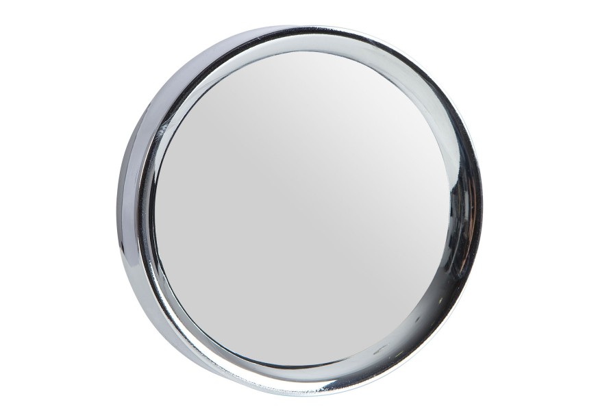 Nástenné malé zrkadlo Kilas upúta na prvý pohľad svojím okrúhlym tvarom a lesklým kovovým rámom, ktorý mu dodáva moderný, no zároveň elegantný glamour charakter. Jeho prevedenie v chrómovej striebornej farbe vytvára zrkadlový efekt, ktorý odráža svetlo a priestor opticky zväčšuje.