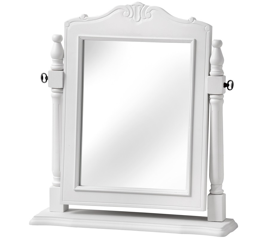 Štýlové toaletné zrkadlo z kolekcie Florence s typickými prvkami francúzskeho vidieku v čistej bielej farbe sa obzvlášť hodí do vidiecky ladených interiérov. Zaujímavým doplnkom je ozdobné lemovanie pozdĺž okrajov zrkadla.