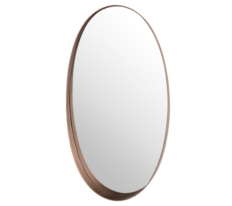 Minimalistické oválne zrkadlo s jednoduchým kovovým rámom v medenej farbe je predstaviteľom nadčasového nábytku, ktorý si svoje miesto nájde v naozaj širokej škále interiérov. Rovnako dobre zapadne do moderných, ale napríkad aj industriálnych, alebo retro priestorov.