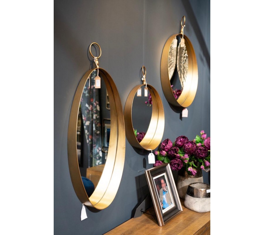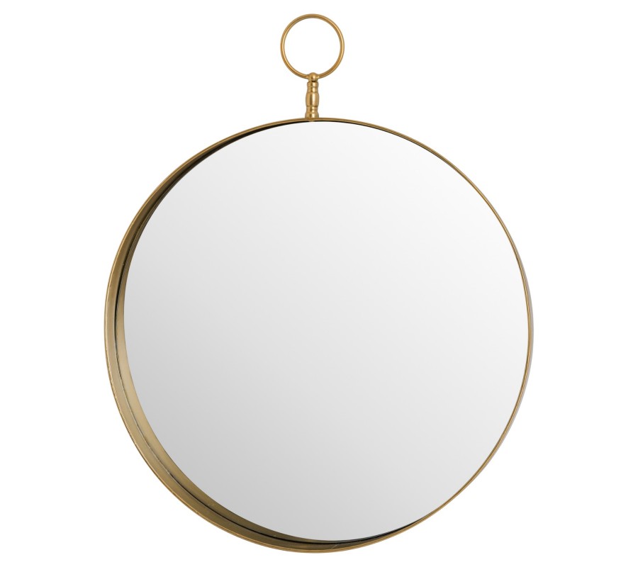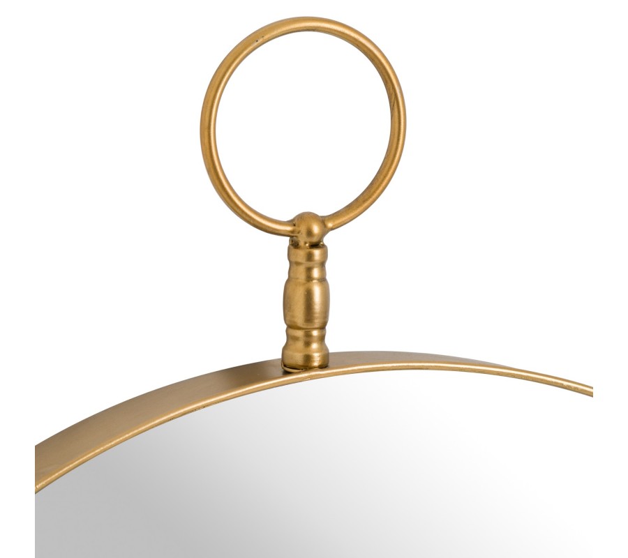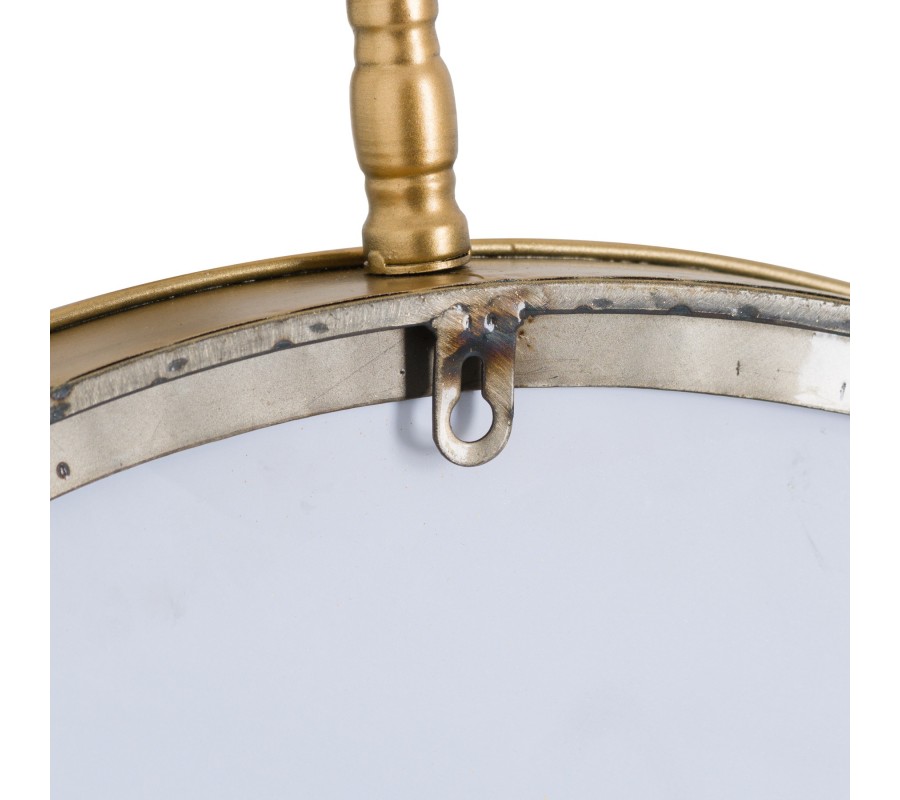 Jedinečné okrúhle zrkadlo s nádychom vintage štýlu je mimoriadne štýlovým interiérovým doplnkom. Na prvý pohľad jednoduché zrkadlo je vo vrchnej časti doplnené o ozdobný krúžok, ktorý zrkadlu dodáva decentný, no napriek tomu zaujímavý ozdobný prvok.