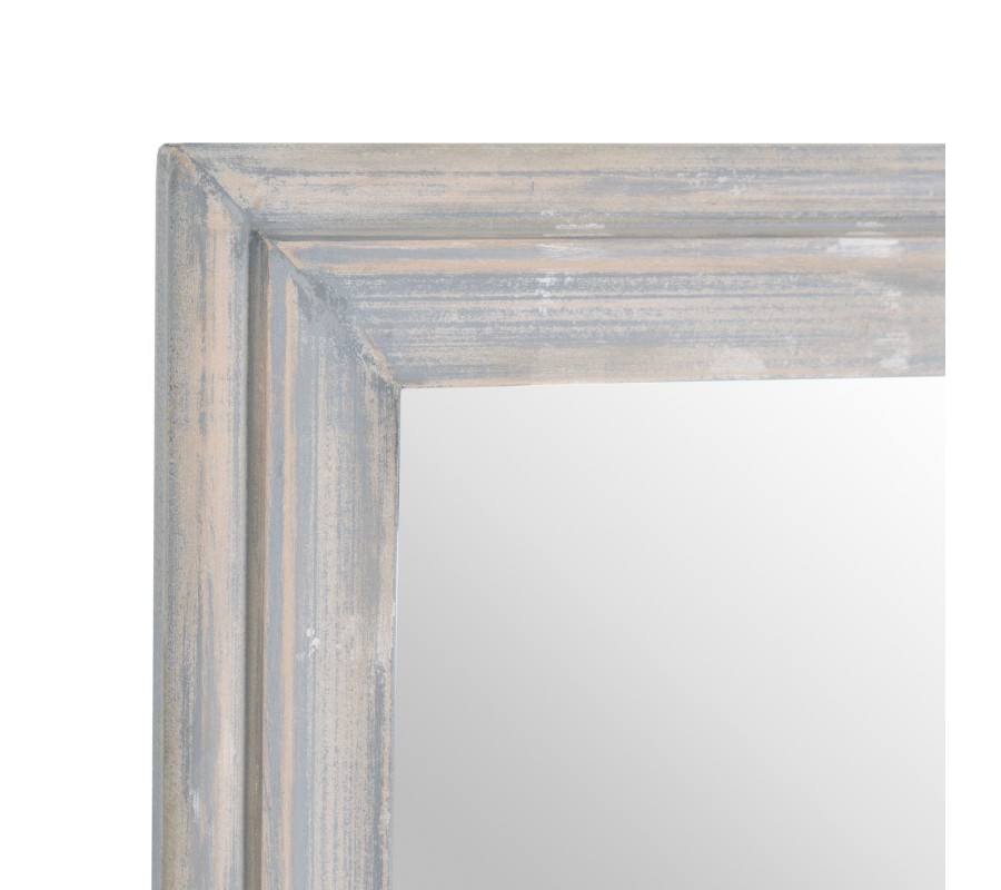 Jedinečné zrkadlo Benicia svojim vzhľadom dokonale zapadne do romantických interiérov zariadených vo vidieckom alebo provensálskom štýle. Vyrezávaný sivý rám z masívneho dreva je doplnený jemnou patinou na dosiahnutie autentického, rustikálneho vzhľadu.