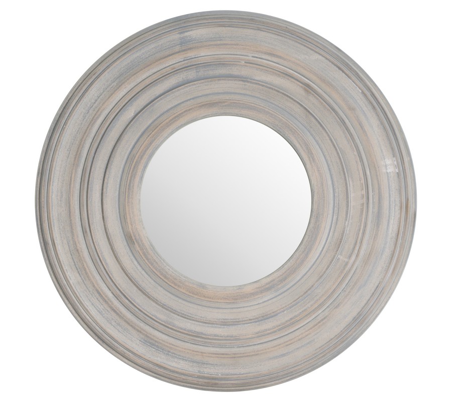 Jedinečné okrúhle vyrezávané zrkadlo na prvý pohľad upúta kontrastom moderného, minimalistického tvaru s rustikálnymi a vidieckymi prvkami. Robustný krémový rám z masívneho dreva je ozvláštnený výrezmi a jemnou patinou. Priemer zrkadla je 27cm.