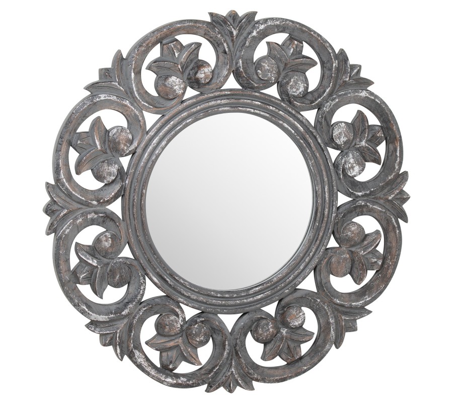 Vintage kruhové nástenné zrkadlo Donramiro v hrubom sivom ornamentálnom ráme 60cm