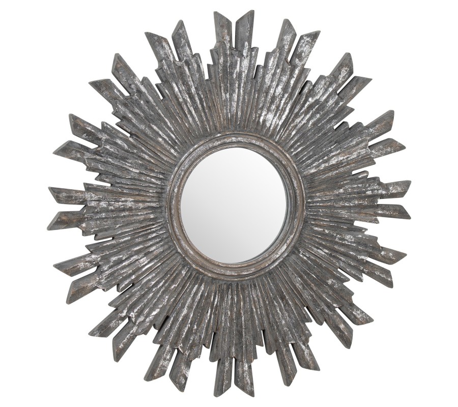 Jedinečné nástenné zrkadlo Maya sa vďaka svojmu hrubému rámu v tvare pripomínajúcom lúče slnka stane neprehliadnuteľnou súčasťou každého interiéru. Dominantný rám zrkadla je vyrobený z masívneho dreva s nadčasovou sivou povrchovou úpravou s ošúchaným vintage efektom. Zrkadlo Maya môžete kombinovať s akýmikoľvek povrchmi, skvele vynikne v priestore zariadenom vo vintage štýle či v interiéroch s orientálnymi prvkami.