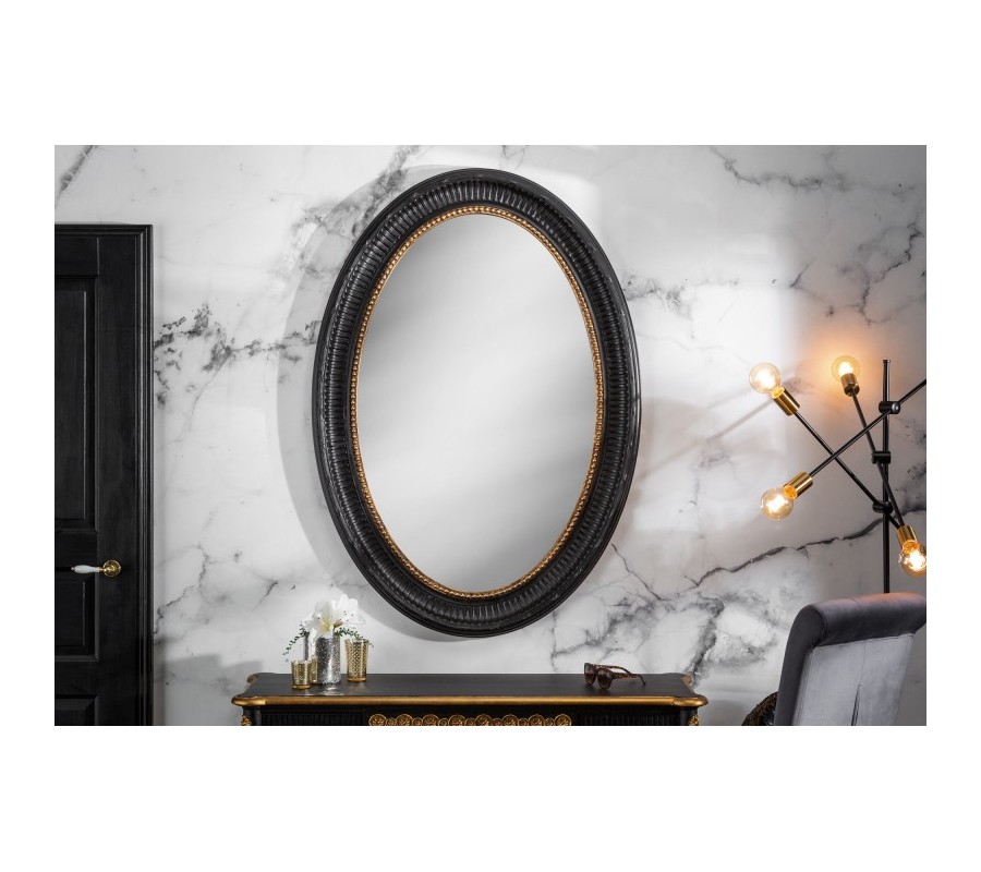 Barokové závesné oválne zrkadlo Windham v zlato-čiernom ráme z dreva 135cm