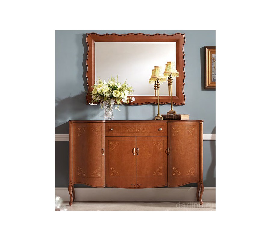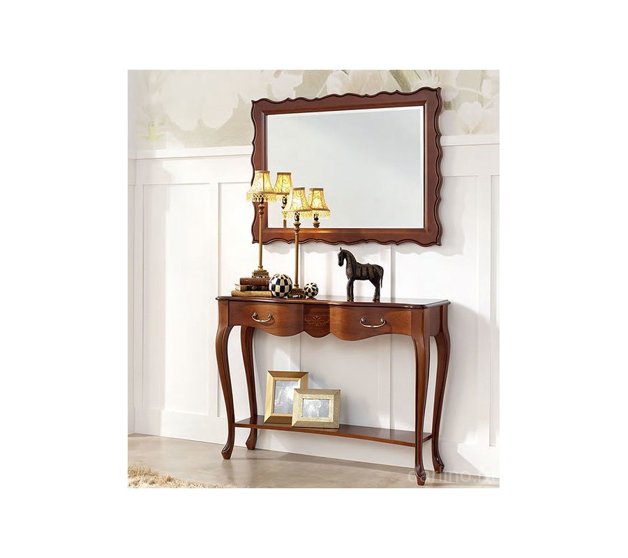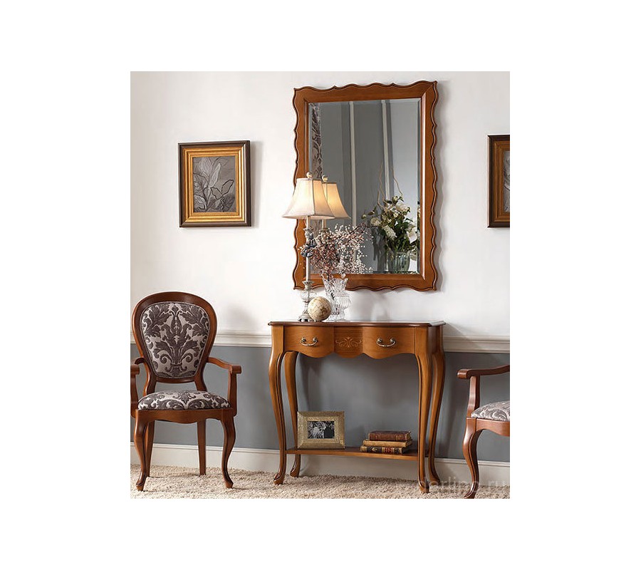 Luxusné zrkadlo z kolekcie Rustica zaujme svojim precízne vyrezávaným rámom z masívneho dreva. Klasický a elegantný vzhľad zrkadlo predurčuje najmä do rustikálne zariadených priestorov. Zrkadlo možno rovnako ako všetok nábytok kolekcie Rustica vyrobiť v štyroch farebných prevedeniach podľa vzorkovníka dreva.