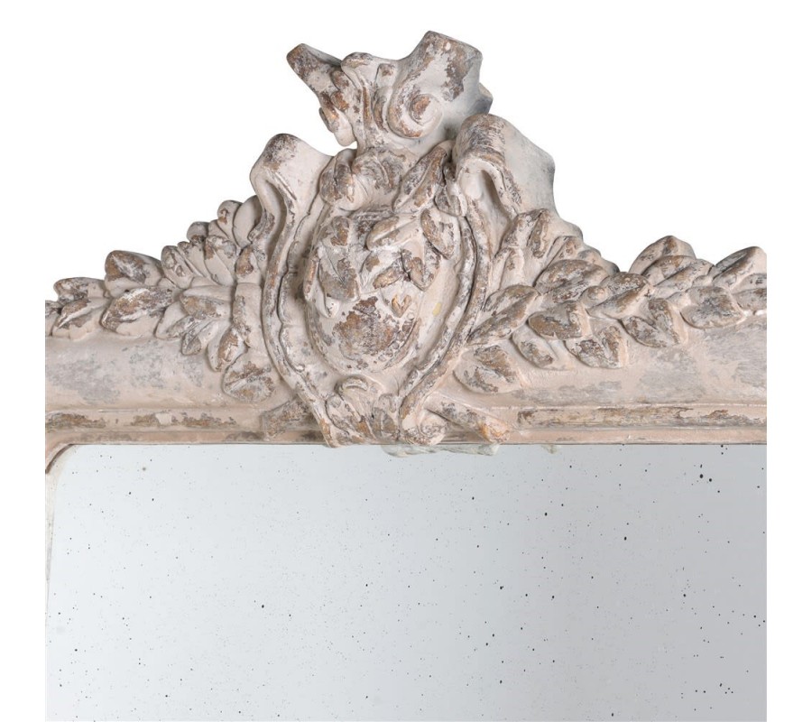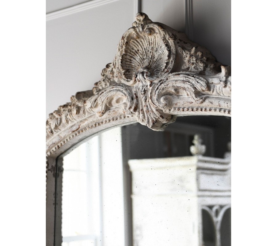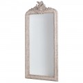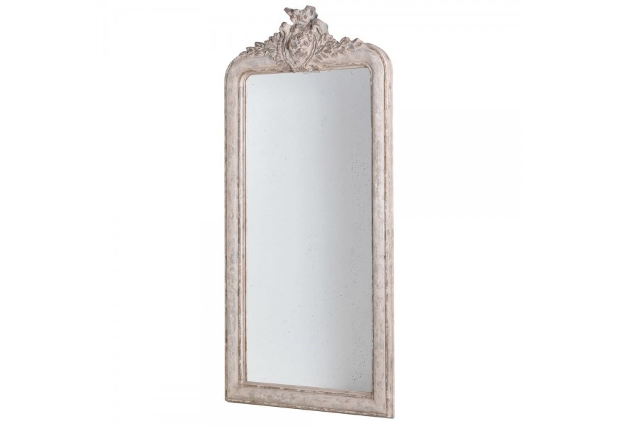 Vintage biele šatníkové zrkadlo z masívu s barokovou vyrezávanou výzdobou na vrchu 190 cm