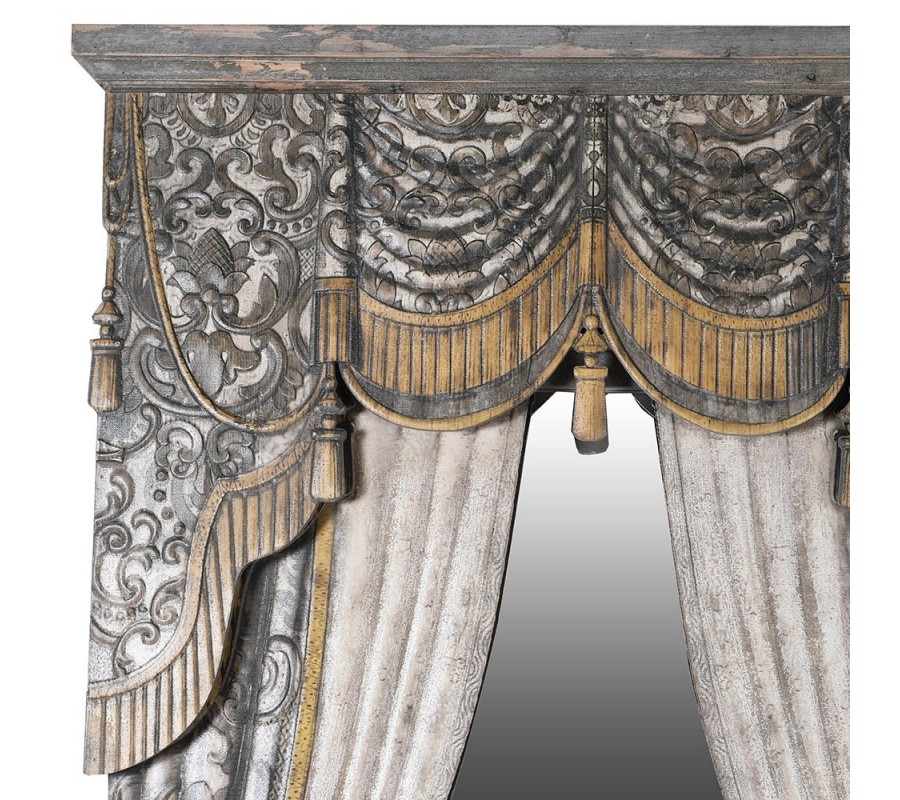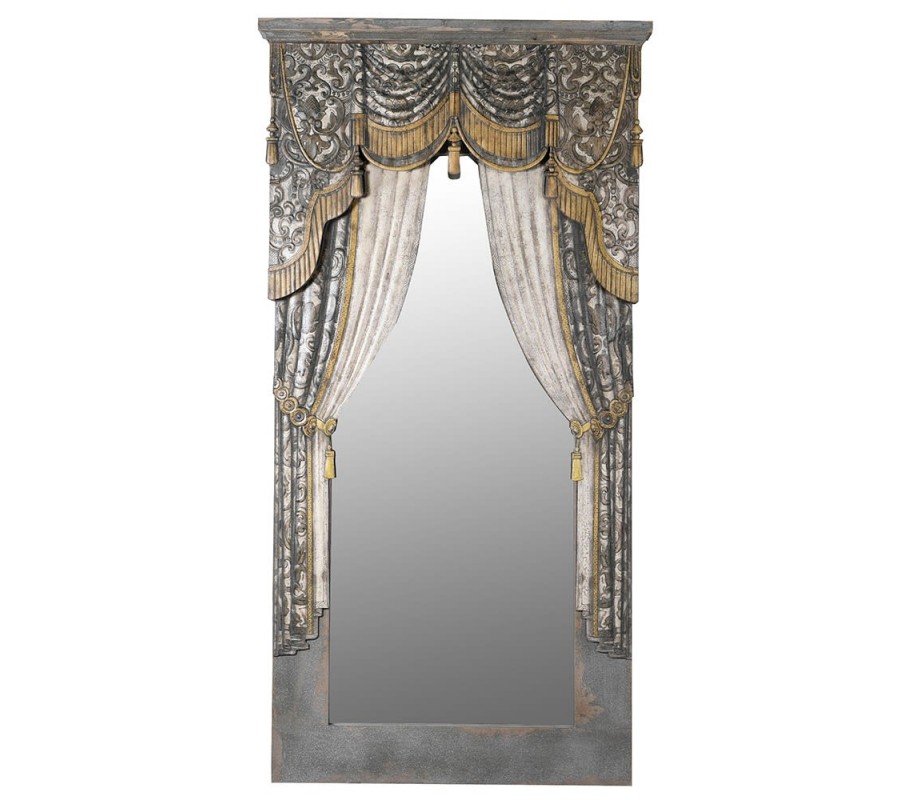 Vintage nástenné zrkadlo s ozdobným rámom v tvare barokového závesu 201 cm