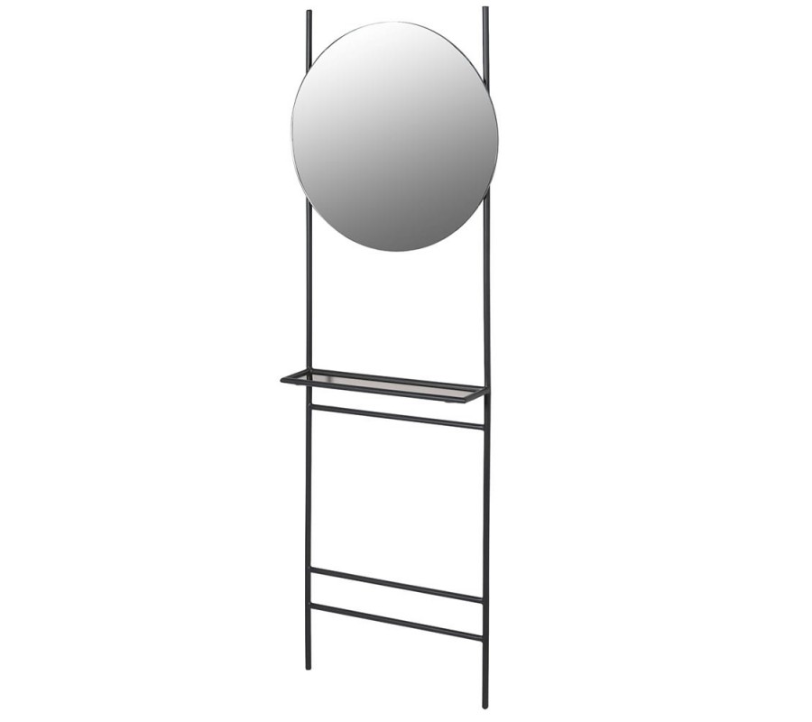 Štýlové nástenné zrkadlo Artes je súčasťou policového nástenného dielu, ktorý je vhodným doplnkom do kúpeľní či chodbových priestorov. Kovová konštrukcia sa nesie v univerzálnej čiernej farbe, a tak poľahky zapadne do rôznofarebne ladených priestorov. Disponuje taktiež praktickou poličkou vhodnou na kozmetiku či iné predmety. Zrkadlo Artes kruhového tvaru je vsadené do geometrickej čiernej konštrukcie, čo vytvára štýlový nadčasový moderný vzhľad. Vynikne predovšetkým v moderne, minimalisticky či škandinávsky ladených priestoroch.