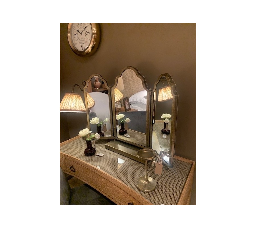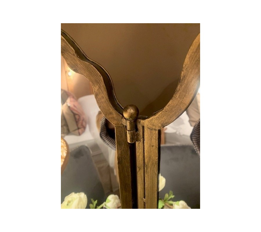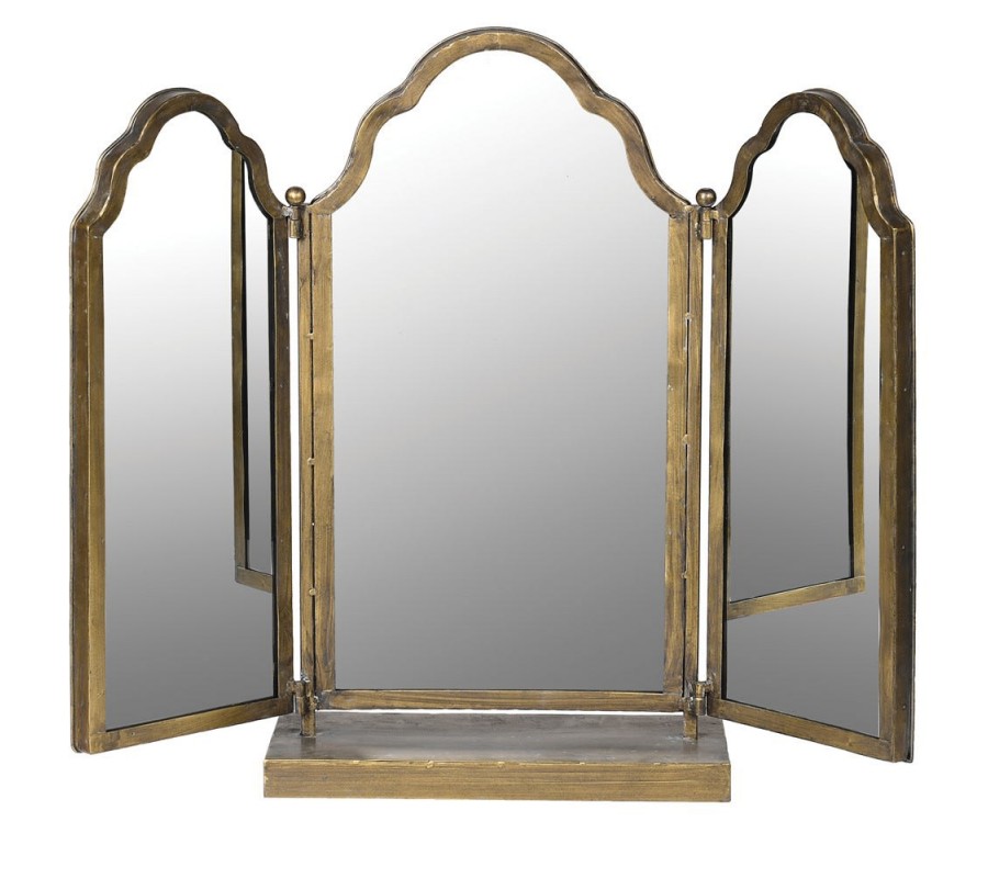 Jedinečné nástenné zrkadlo Shelley zaujme milovníkov art-deco či zámockého štýlu. Zrkadlo pozostáva z troch samostatných častí a je tvorené konštrukciou triptychu, pričom zrkadlá po stranách sa dajú uzavrieť. Rám z kovu v zlatej farbe vytvára unikátny zámocký efekt, ktorý zapadne do každého luxusného interiéru. Zrkadlo Sheley krásne vynikne na bielych stenách a dá sa výborne kombinovať s rôznymi art-deco doplnkami či nábytkom v zámockom alebo barokovom štýle.
