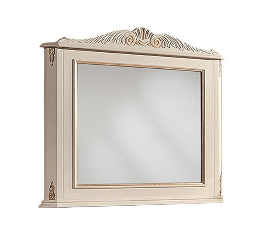 Nástenné zrkadlo z našej novej talianskej kolekcie Emociones je jedinečným kúskom, ktorý sa hodí do každej domácnosti, kde prevláda v miestnostiach barokový, rustikálny alebo zámocký štýl. Zrkladlo je vsadené do rámu, ktoré je vyrobené z masívneho dreva v bielej farbe. Tvar rámu je minimalistický obdĺžnikový, pričom je v hornej časti doplnený elegantným a ručne vyrezávaným prvkom, čo dodáva zrkadlu originalitu. Detaily rámu v antickej zlatej farbe i celkové luxusné prevedenie s nádychom baroka zaručene rozžiari vašu domácnosť. Hodí sa do bytových priestorov, napríklad do prednej časti predsiene, spálne, alebo obývačky. Farbu rámu zrkadla si môžete podľa svojich predstáv vybrať zo vzorkovníka. Môžete ju umiestniť napríklad do obývacej izby nad rustikálnu komodu, alebo do predsiene nad konzolový stolík v barokovom štýle.
