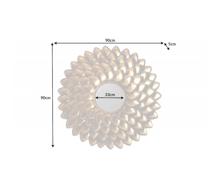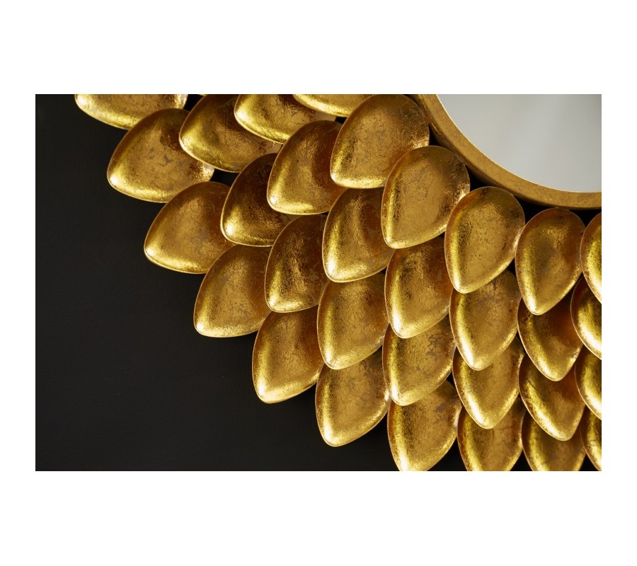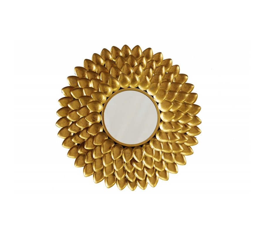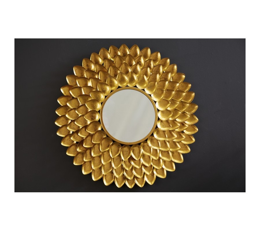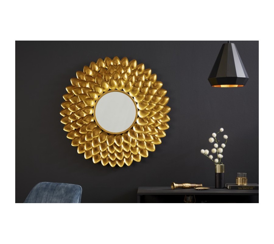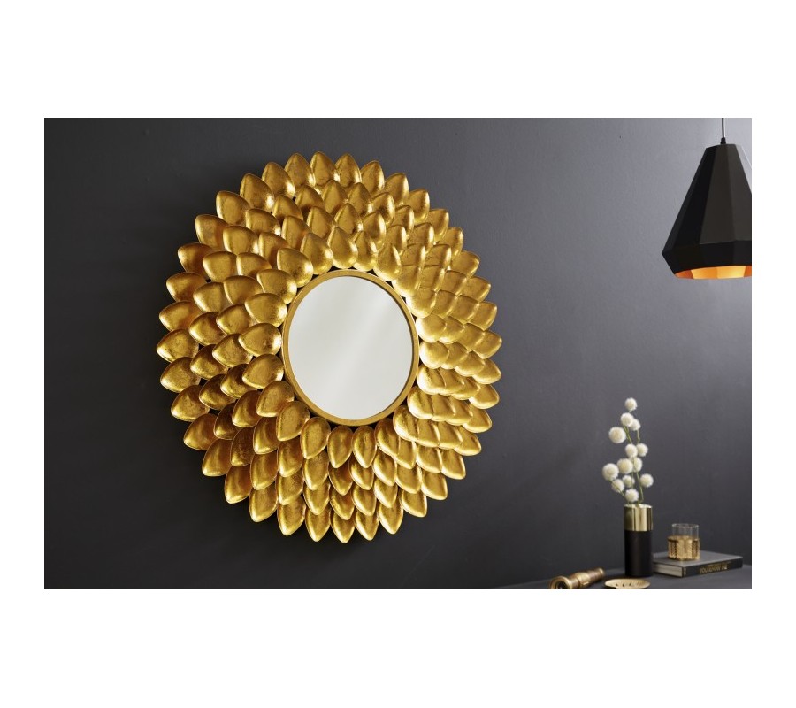 Art-deco kruhové nástenné zrkadlo Tizia s rámom v tvare lupeňov kvetu v zlatej farbe 90cm