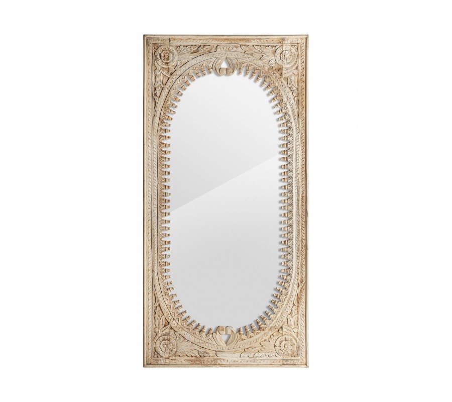 Orientálne masívne nástenné zrkadlo Vallexa z mangového dreva s vyrezávanými ornamentálnymi vzormi 200cm
