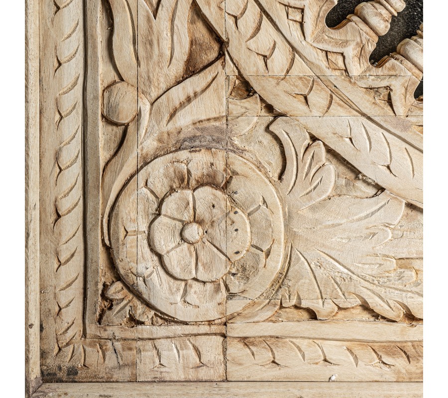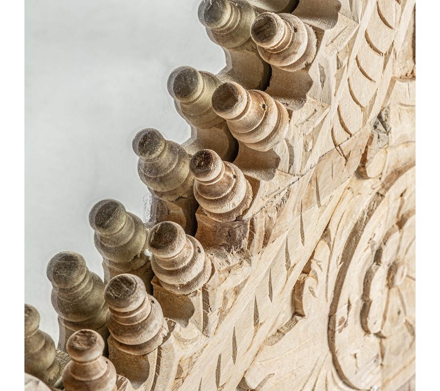 Nástenné zrkadlo ručnej výroby z našej jedinečnej kolekcie orientálneho a etno nábytku Vallexa sa vyznačuje predovšetkým svojím mohutným rámom s bohatým zdobením. Rám obdĺžnikového tvaru je vyrobený z masívneho mangového dreva, vďaka čomu dostáva nezameniteľný prírodný nádych. Ornamentálne detailné ručné vyrezávanie vás prenesie do luxusných vidieckych rezidencií s orientálnym nádychom a vkusne zútulní priestory vašej spálne, obývačky či chodby. Vďaka prírodnej svetlohnedej farbe nebudete mať problém tento kúsok kombinovať ani s výraznejšími dekoráciami a ľahko ho doplníte do svetlejších i tmavších priestorov, Zrkadlo Vallexa možno využiť aj v priestoroch luxusných hotelov, reštaurácií alebo čajovní. Odporúčame ho umiestniť do orientálne alebo vidiecky ladených interiérov.