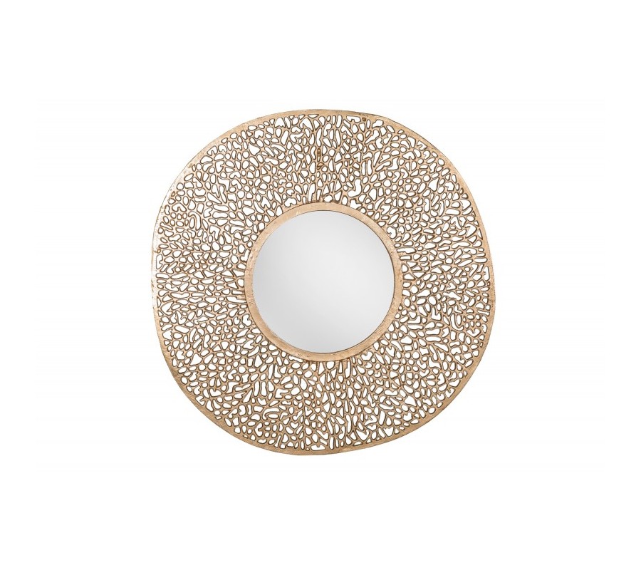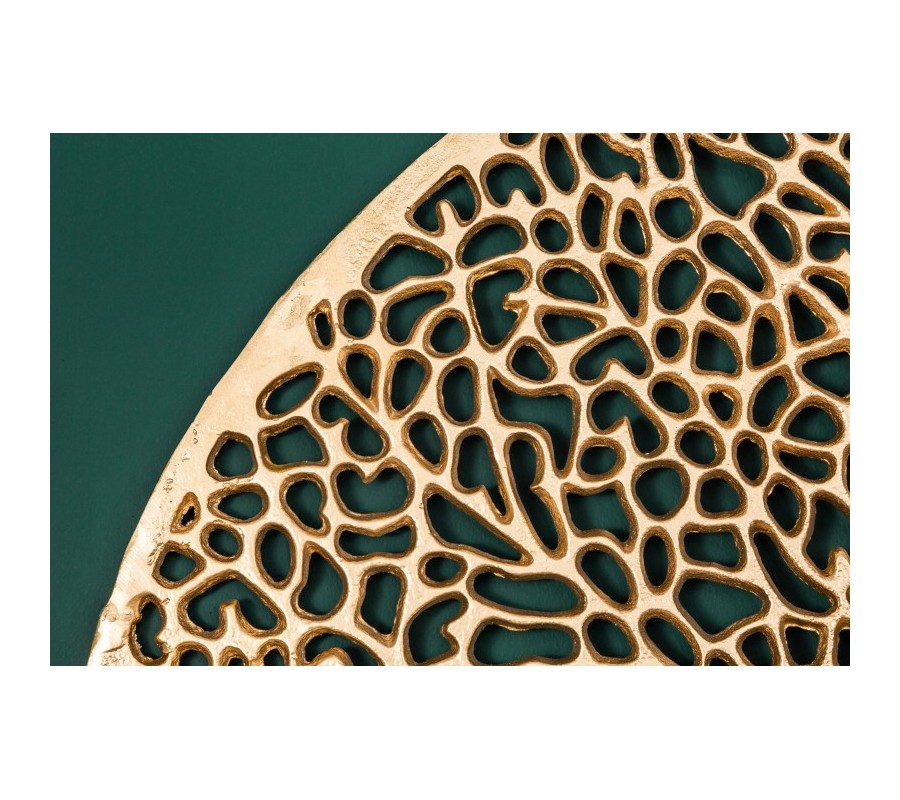 Štýlové zrkadlo Hoja sa bude krásne vynímať na stenách tmavých farieb. Vďaka svojmu mohutnému rámu z kovu, ktorý sa nesie v žiarivej zlatej farbe, do vášho interiéru vnesie nádych luxusu a vhodne vynikne predovšetkým v priestoroch ladených v modernom alebo art-deco štýle. Pozornosť upúta najmä vďaka zaujímavému sieťovému vzoru rámu. Zrkadlo kruhového tvaru si svoje miesto nájde v predsieňach či chodbách, obývačkách alebo pracovniach, rovnako ako aj v reprezentatívnych priestoroch firiem, zasadacích miestností či hotelových izieb. Svojím elegantným dizajnom spríjemní a zútulní každý interiér a dodá mu nádych noblesy. Zrkadlo Hoja odporúčame kombinovať s nábytkom v art-deco štýle.