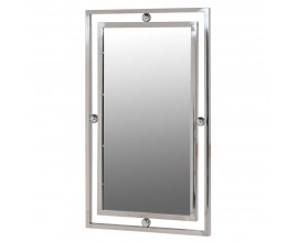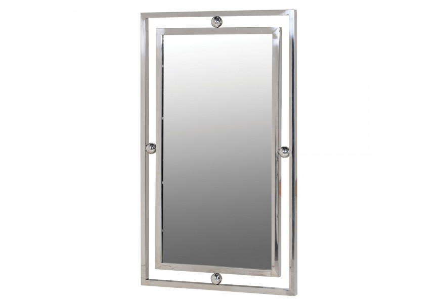 Art deco dizajnové obdĺžnikové zrkadlo Metabol s dvojitým kovovým rámom v striebornej farbe 100cm