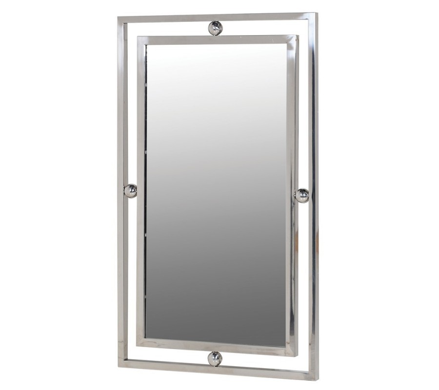 Dizajnové zrkadlo Metabol v pevnom nadčasovom ráme v striebornej farbe vás vtiahne do atmosféry umelecky poňatej geometrie, a tak sa stane podnetom na úvahy vďaka svojim jednoduchým líniám doplneným o štyri guľaté dekorácie rozdelujúce dvojitý rám obdĺžnikového zrkadla. Zrkadlo sa bude skvelo hodiť do či už do obývačky a predsiene vo vašom domove alebo do minimalisticky zariadených hotelových recepciií a lobby barov. V interiéri s vysokou kovovou lesklou lampou a sedačkou v pistáciovej farbe na strieborných nožičkách vytvorí moderný, štýlový a umelecký dojem. Zrkadlo Metabol si svoje miesto nájde zavesené na bielej či perlovo sivej stene a spolu s kovovými svietnikmi geometrických tvarov podčiarkne art deco nádych vo vašom domove či biznis priestoroch.