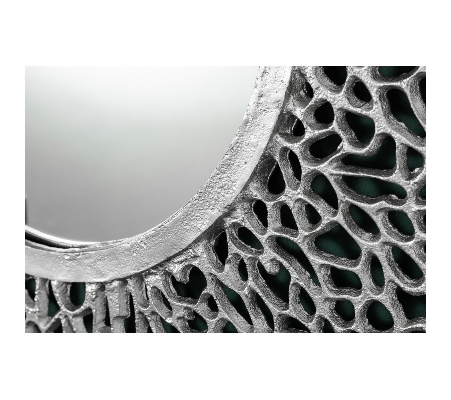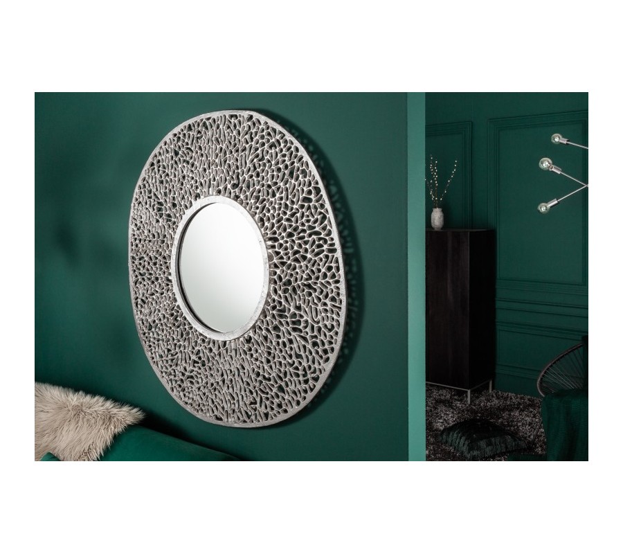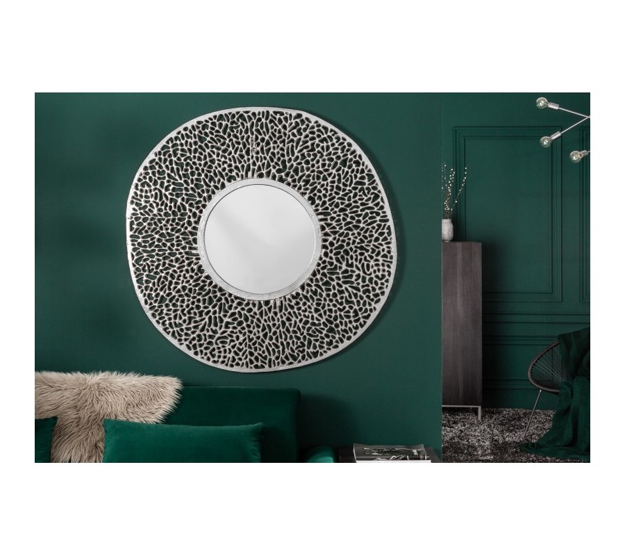 Art-deco okrúhle nástenné zrkadlo Hoja z kovovej zliatiny v striebornej farby 112cm