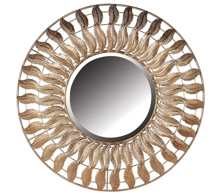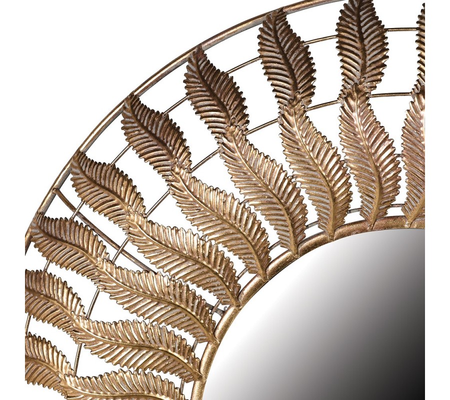 Art-deco okrúhle veľké nástenné zrkadlo Philippe v kovovom ráme zlatej farby so vzorom pierok 70cm