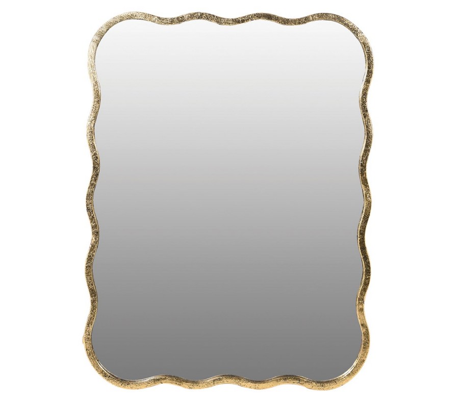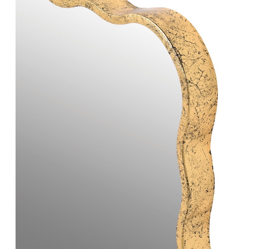 Vintage obdĺžnikové nástenné zrkadlo Asanna I v asymetrickom kovovom ráme zlatej farby 80cm