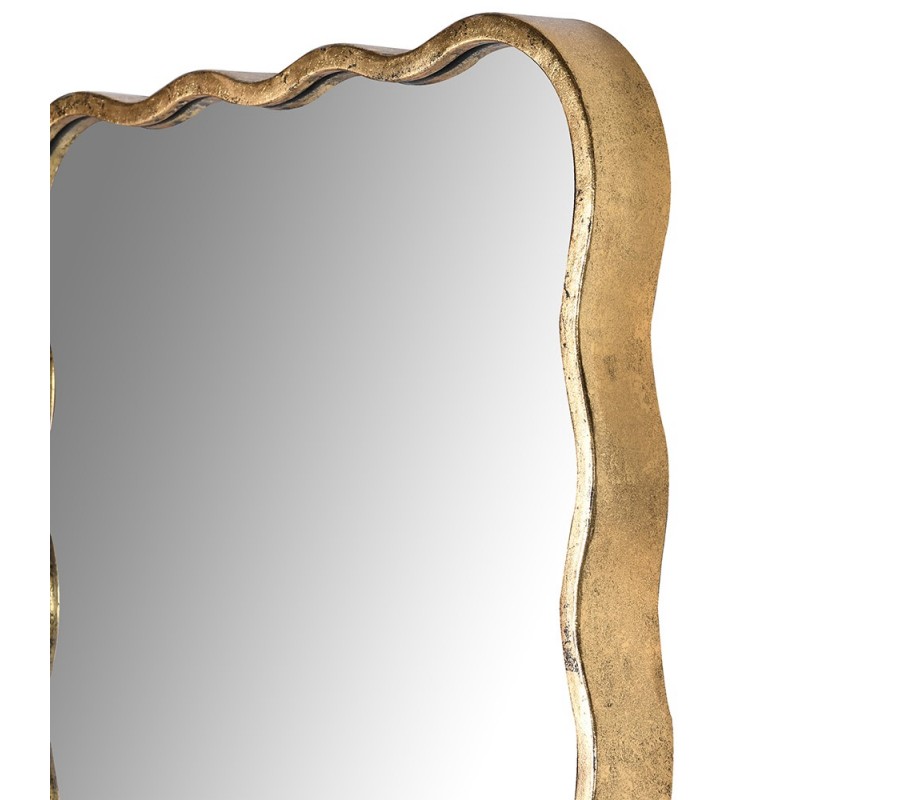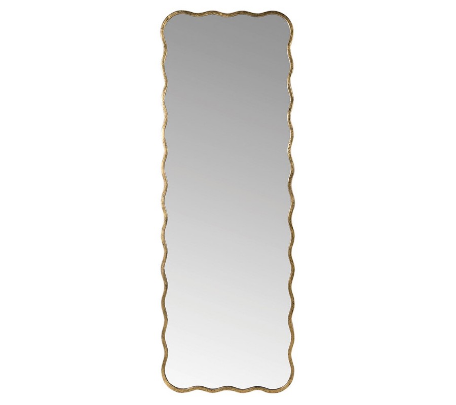 Vintage obdĺžnikové šatníkové zrkadlo Asanna II v kovovom zvlnenom ráme zlatej farby 170cm