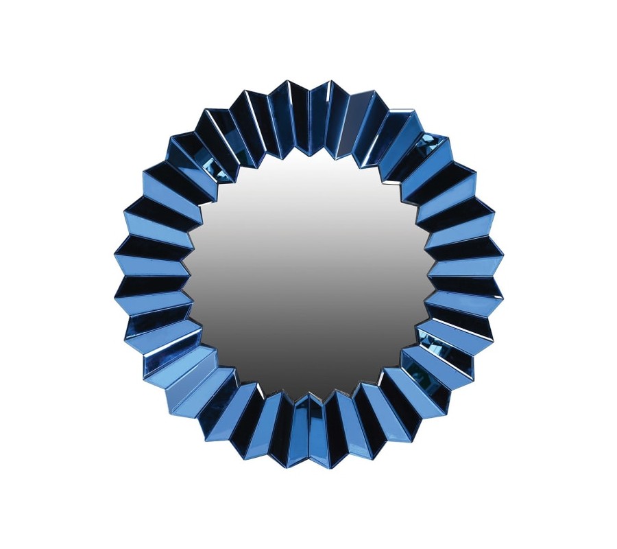 Dizajnové nástenné zrkadlo Senchi poteší milovníkov originálnych a inovatívnych interiérových doplnkov. Zrkadlo disponuje okrúhlym rámom s vejárovitou štruktúrou, ktorý sa nesie v štýlovej elektrickej modrej farbe a vytvára tak luxusný moderný nádych. Rám je tiež doplnený o zrkadlový efekt, ktorý dodáva zrkadlu nádych art-deco štýlu. Tento kúsok možno doladiť do moderných a art deco ladených interiérov, kde vynikne napríklad v kombinácii s čalúneným kreslom či skleneným alebo zrkadlovým nábytkom. Odporúčame tiež dizajnové kovové dekorácie v strieborných, čiernych alebo zlatých odtieňoch.