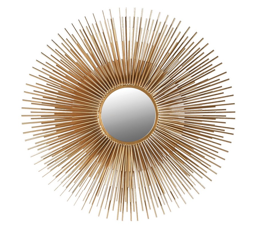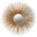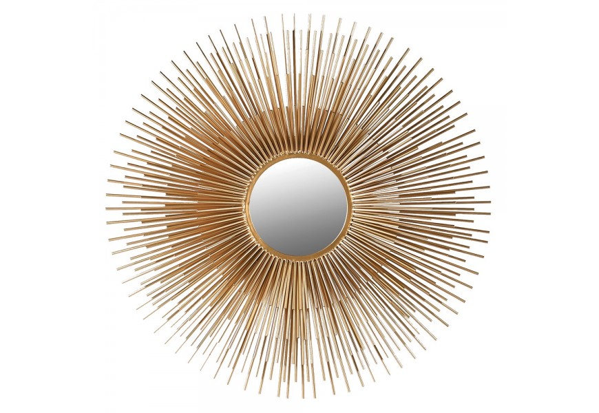 Art deco okrúhle nástenné zrkadlo Xaphania pripomínajúce slnko s tenkými kovovými lúčmi zlatej farby 100cm