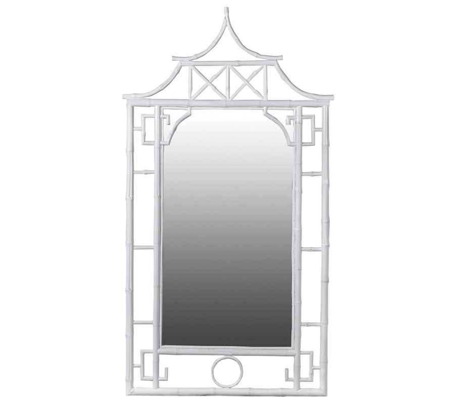 Orientálne biele nástenné bambusové zrkadlo Panda v tvare obdĺžnika s jednoduchým zdobením rámu v štýle pagoda 154cm