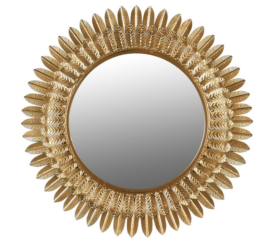 Art deco okrúhle nástenné zrkadlo Leanne s rámom tvoreným listami zlatej farby z kovu 70cm