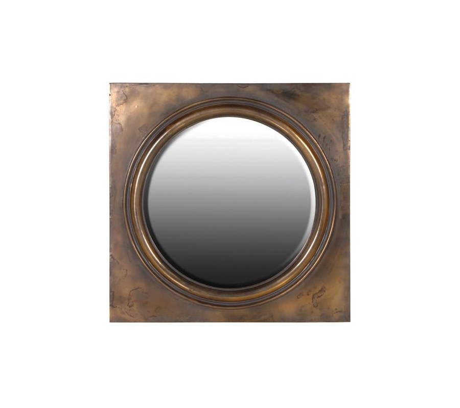 Elegantné zrkadlo Withsword predstavuje luxusný doplnok nesúci sa vo vintage štýle. Tento kúsok vynikne na stenách rôznych farieb a dokonale doplní vaše priestory. Okrúhle zrkadlo je osadené v štvorcovom ráme medej farby s patinou zostarnuti, vďaka čomu dostáva jemný antický nádych. Geometrické tvary kombinované s vintage farebnnosťou a jemným vyrezávaním na ráme zrkadla vytvárajú zaujímavý vzhľad, ktorý vhodne doplní predovšetkým tmavšie ladené priestory, kde vytvorí luxusný nádych. Svoje miesto si nájde v obývačkách, chodbách či vstupných halách a ideálne vynikne v kombinácii s masívnym dreveným nábytkom vo vintage štýle.