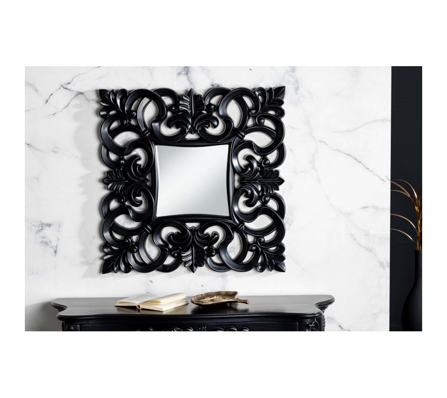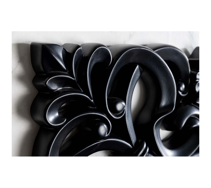 Luxusné nástenné zrkadlo Muriel v matnej čiernej farbe s ozdobným rámom z dreva a polyresinu 75cm