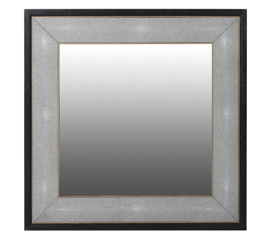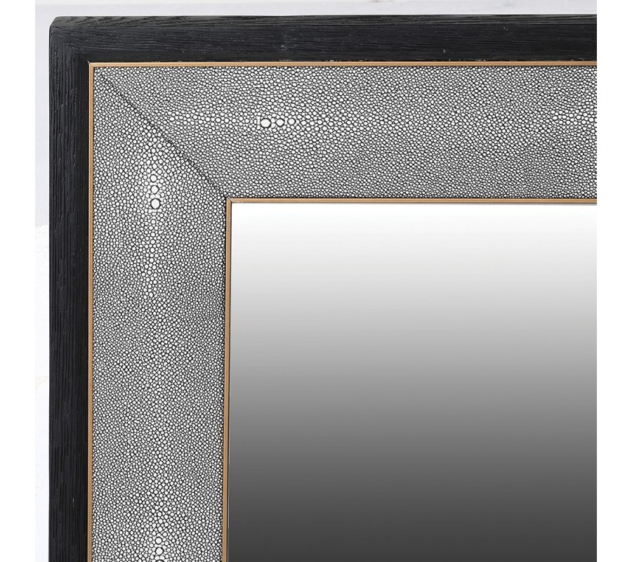 Moderné nástenné zrkadlo Otawa zaujme svojím inovatívnym dizajnom tvoreným kombináciou eko-kože, kovu a masívneho dreva. Štvorcový rám zrkadla sa nesie v čiernej farbe, ktorú dopĺňa jemný zlatý kovový pásik a šagrénová kožená výplň. Materiál šagrén svojím vzhľadom pripomína žraločiu kožu a jej sivá povrchová úprava je doplnená o štýlovú štruktúru materiálu vytvárajúcu moderný vzhľad. Zrkadlo je tak ideálnym adeptom na oživenie prázdnych stien moderných priestorov obývačiek, spální či chodieb. Je tiež vhodnou voľbou pre spestrenie beauty salónov, hotelov či iných reprezentatívnych piestorov. Krásnu kombináciu vytvorí s čiernym masívnym nábytkom a zlatými doplnkami. Zrkadlo taktiež skvelo doplní priestory zariadené aj ďalšími kúskami nábytku z našej rovnomennej kolekcie Otawa!