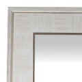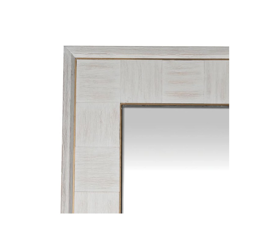 Nástenné zrkadlo je skvelým spôsobom, ako prakticky využiť prázdne steny vašich miestností. Ak hľadáte interiérový doplnok, ktorý sa dá vhodne kombinovať so širokou škálou farieb a ktorý elegantne zútulní vaše priestory, zrkadlo Pompye môže byť pre vás tou správnou voľbou! Toto zrkadlo klasického obdĺžnikového tvaru zaujme svojím jednoduchým, no elegantným vzhľadom. Masívny drevený rám sa nesie v bielej off white farbe, pričom povrchová úprava necháva vyniknúť jeho prirodzenú kresbu. Zároveň precíznym ukladaním jednotlivých kúskov dreva s rozličnými smermi kresby vzniká zaujímavý štvorcový vzor, ktorý lemuje kovové zdobenie v zlatej farbe. Elegantný vzhľad zrkadla Pompye krásne doplní najmä tmavé kontrastné steny. Svoje miesto si nájde na chodbe či v obývačke, rovnako ako aj v priestoroch luxusných hotelov, firiem či lobby barov.