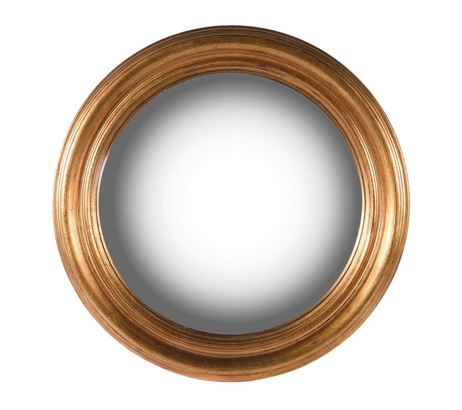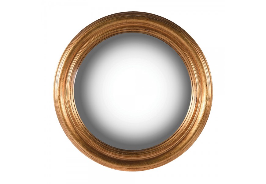 Antické zlaté nástenné zrkadlo Moreo II s okrúhlym vyrezávaným rámom z masívneho dreva 47cm
