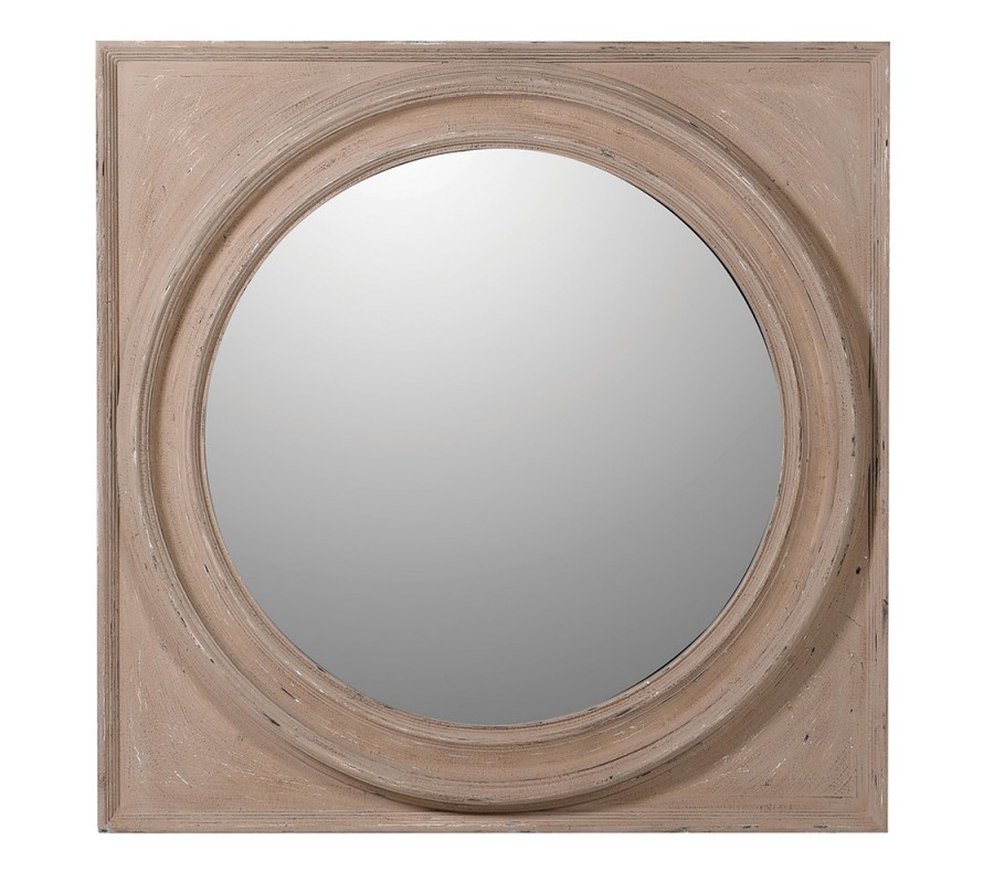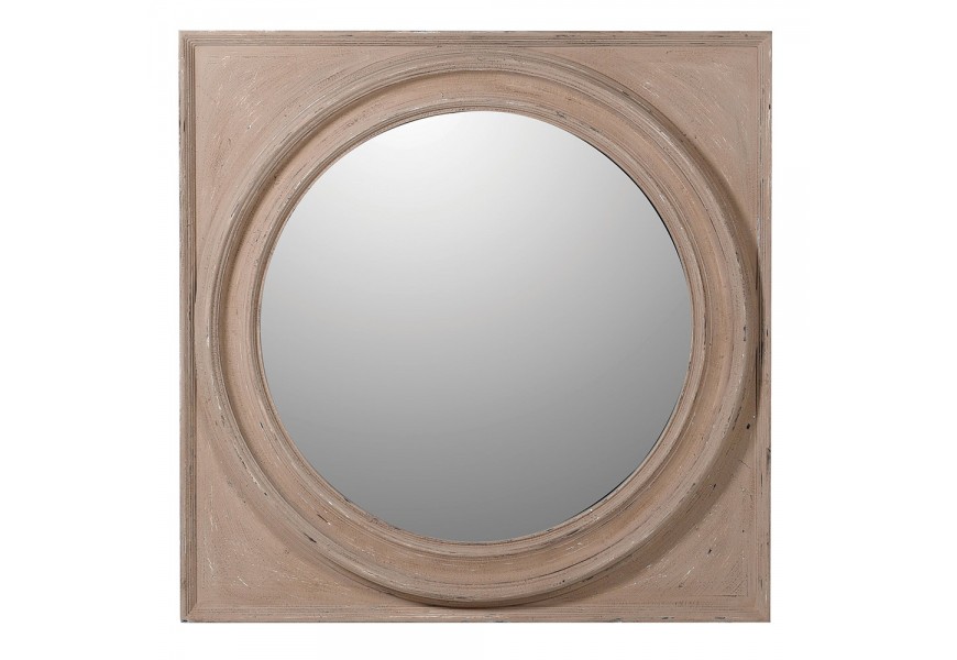 Klasické nástenné zrkadlo Umma so štvorcovým vyrezávaným dreveným rámom hnedej farby 100cm