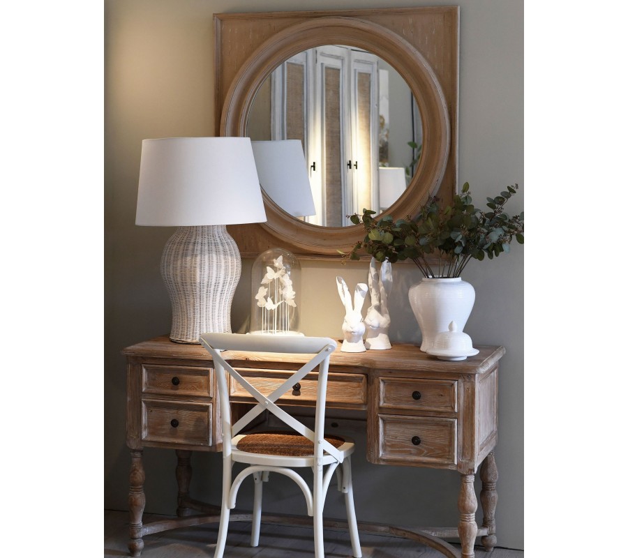 Nástenné zrkadlo Umma sa pýši svojím elegantným prevedením v klasickom štýle. Zaujme svojím rámom z masívneho dreva paulownia, ktoré sa vyznačuje svojou ľahkosťou a pevnosťou. Nesie sa v svetlohnedom odtieni a je zdobený jemnými vyrezávanými ornamentálnymi líniami v kruhovom tvare samotného zrkadla. Zrkadlo Umma je možné umiestniť na kontrastné steny v klasicky ladených obývačkách, spálňach či chodbách, kde vynikne predovšetkým v kombinácii s masívnym nábytkom a sedačkou či kreslom v naturálnych odtieňoch.