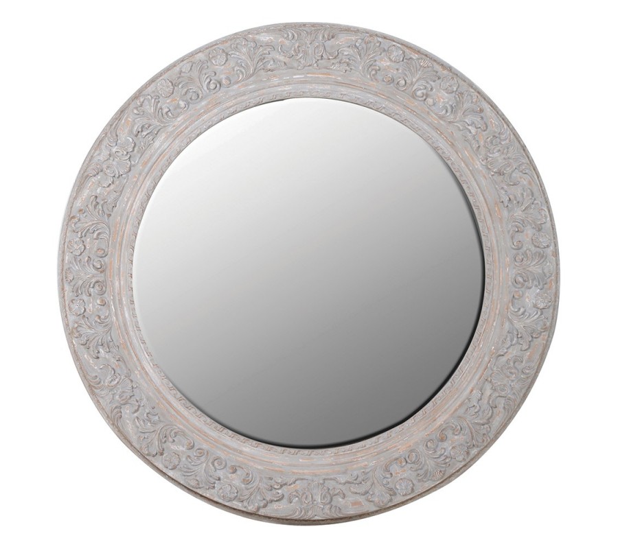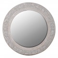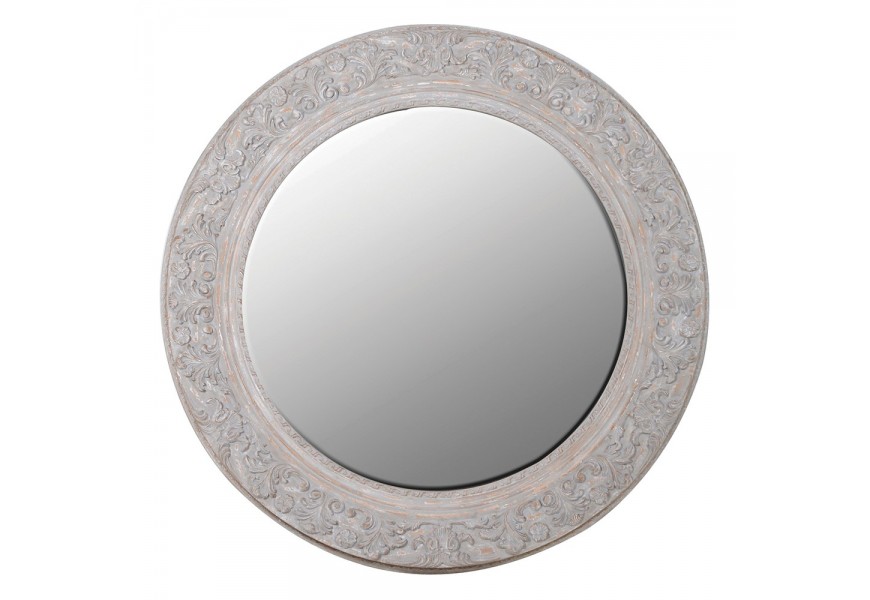 Nástenné zrkadlo Anwick poteší všetkých milovníkov antického a rustikálneho štýlu, ktorí hľadajú do svojho interiéru vkusný a elegantný doplnok s praktickým využitím. Dominantou zrkadla je jeho okrúhly masívny rám z exotickej dreviny paulownia, ktorá je špecifická predovšetkým svojou odolnosťou a ľahkosťou. Rám sa nesie v svetlej sivohnedej farbe vytvárajúcej starožitný dojem. Ten je umocnený nádherným detailným vyrezávaným zdobením, ktoré lemuje celý rám a dodáva zrkadlu autentický nádych štýlu vintage. Zrkadlo Anwick možno umiestniť do chodieb, obývačiek či spální, vhodne však doplní aj tématicky ladené priestory hotelov či štýlových kaviarní.