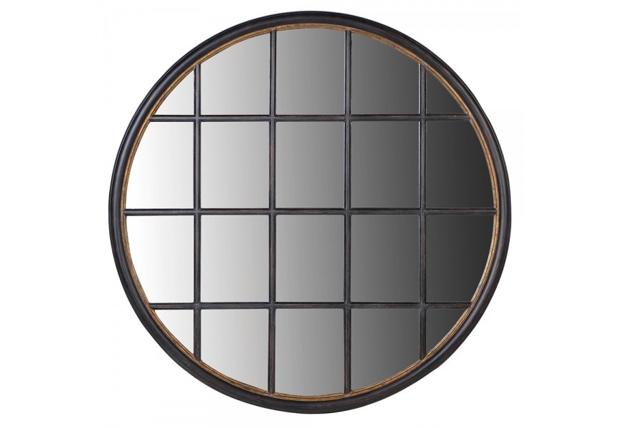 Vintage okrúhle nástenné zrkadlo Peras s dreveným rámom čiernej farby 120cm