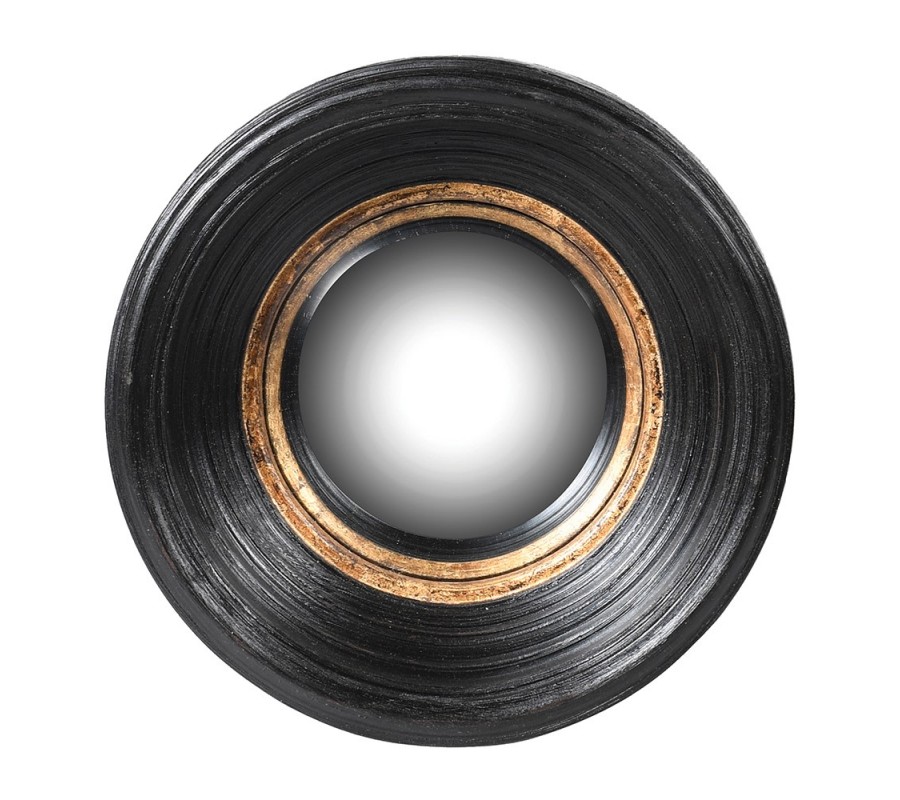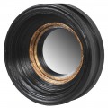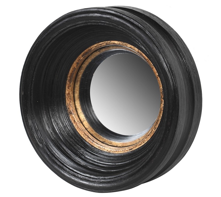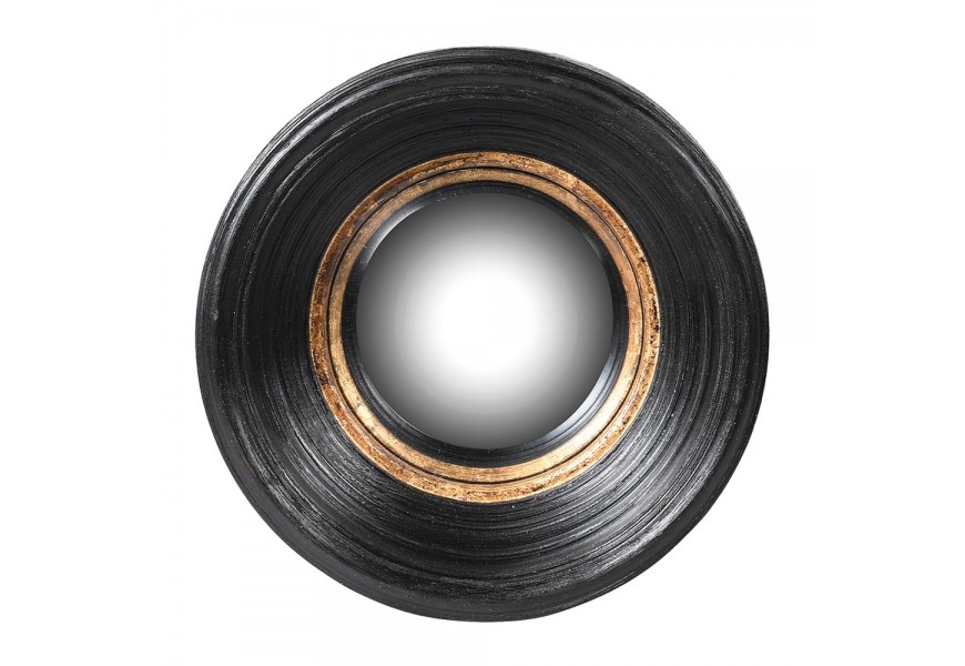Dizajnové vintage nástenné zrkadlo Bremen s okrúhlym vystupujúcim rámom čiernej farby s medeným zdobením 34cm