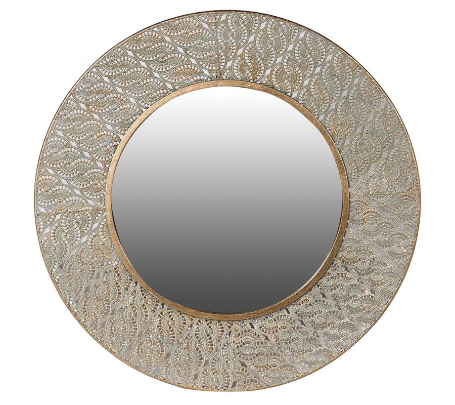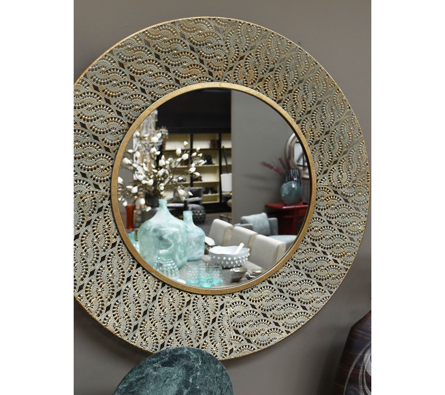 Orientálne okrúhle filigránové kovové zrkadlo Loran so zlatým efektom 90cm