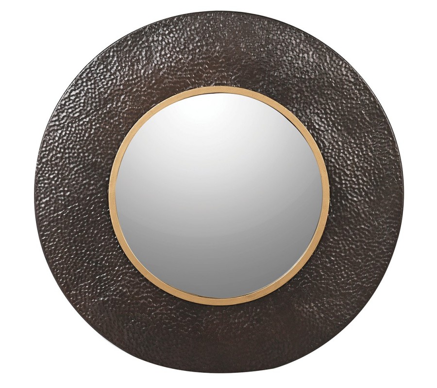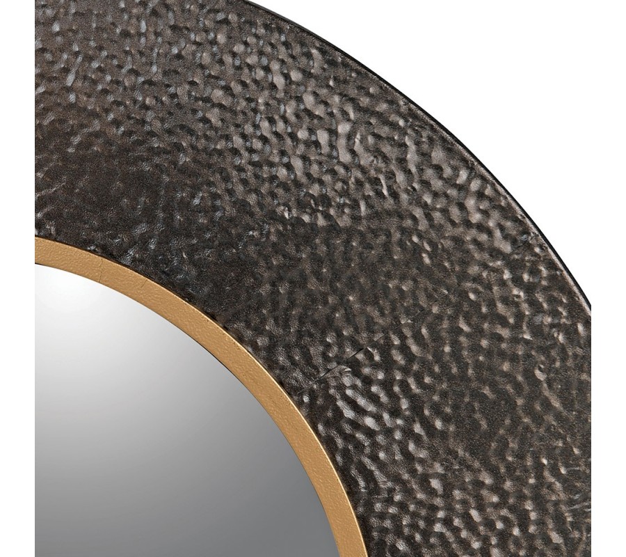 Dizajnové okrúhle zrkadlo Samei z kovu tmavohnedej farby so štruktúrovaným rámom 80cm