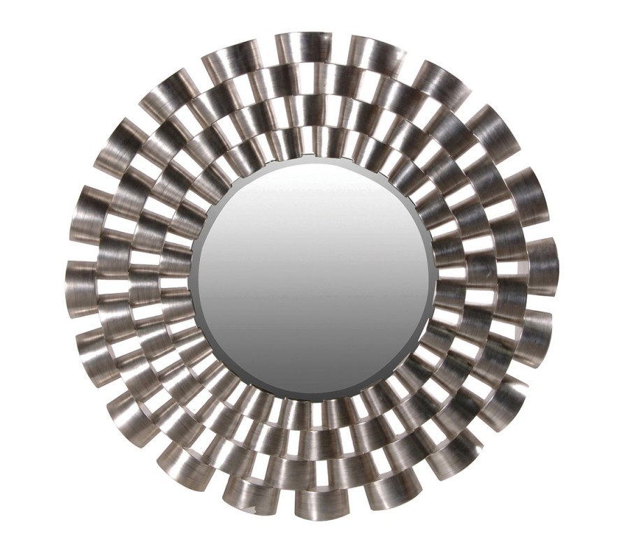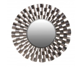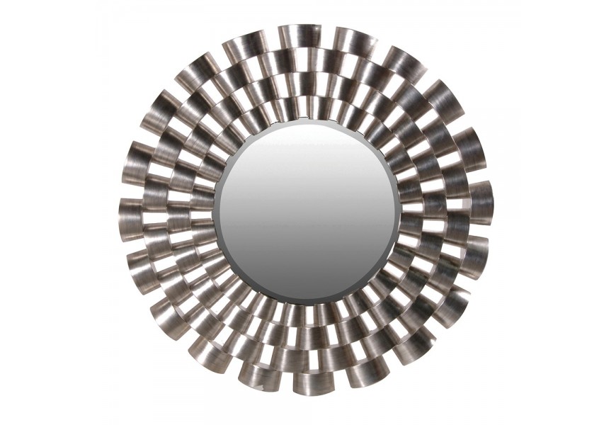 Okrúhle zrkadlo Sunny v modernom art deco štýle v striebornom prevedení s ozdobným rámom 120cm
