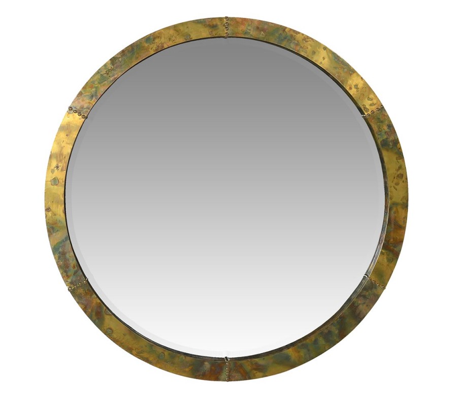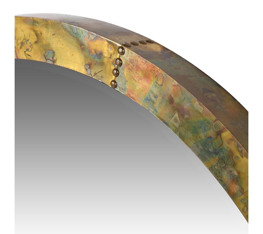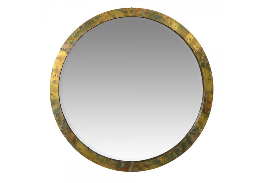 Kruhové vintage zrkadlo Mottled Brass s mosadzným rámom 92cm