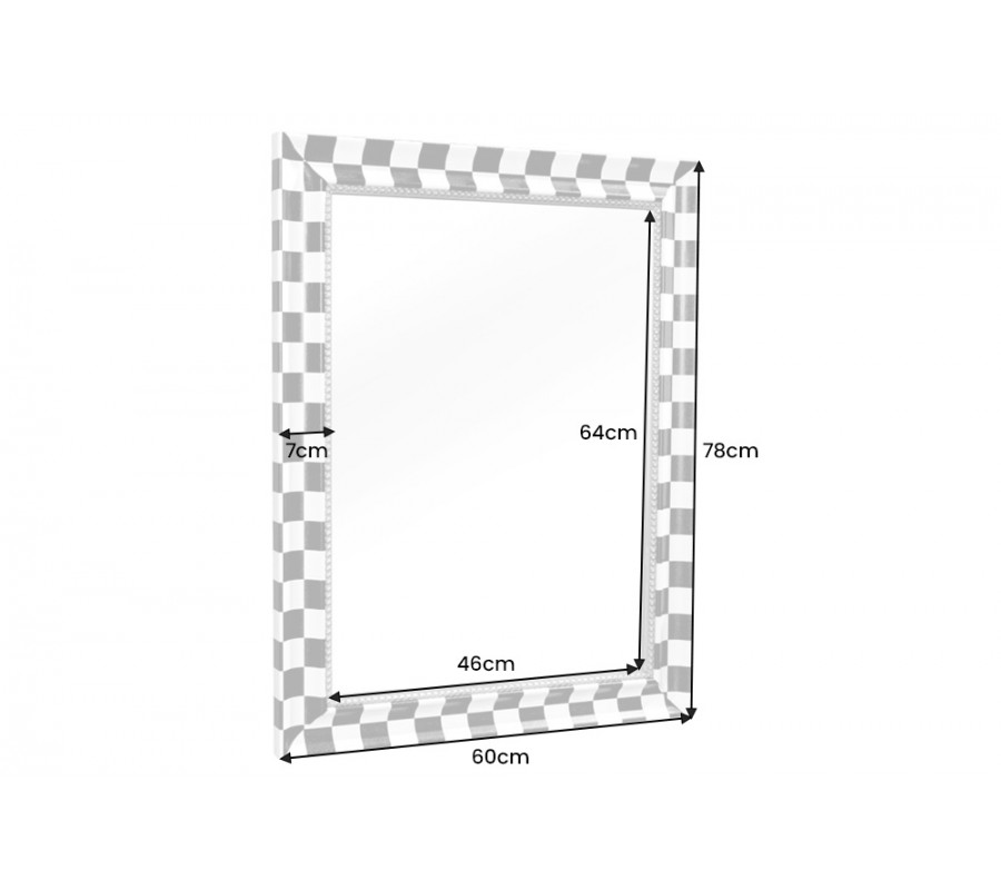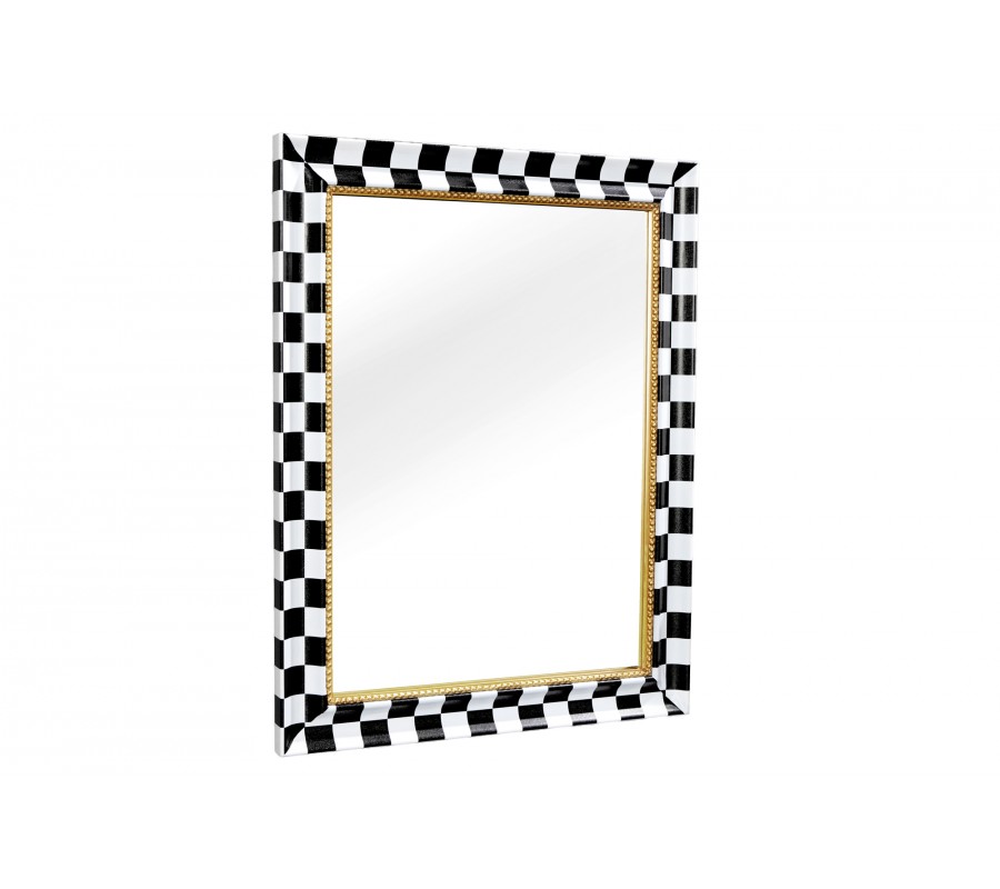 Zrkadlo Aliem so šachovnicovým rámom v čierno bielej farbe a zlatým detailom v glamour štýle 78 cm