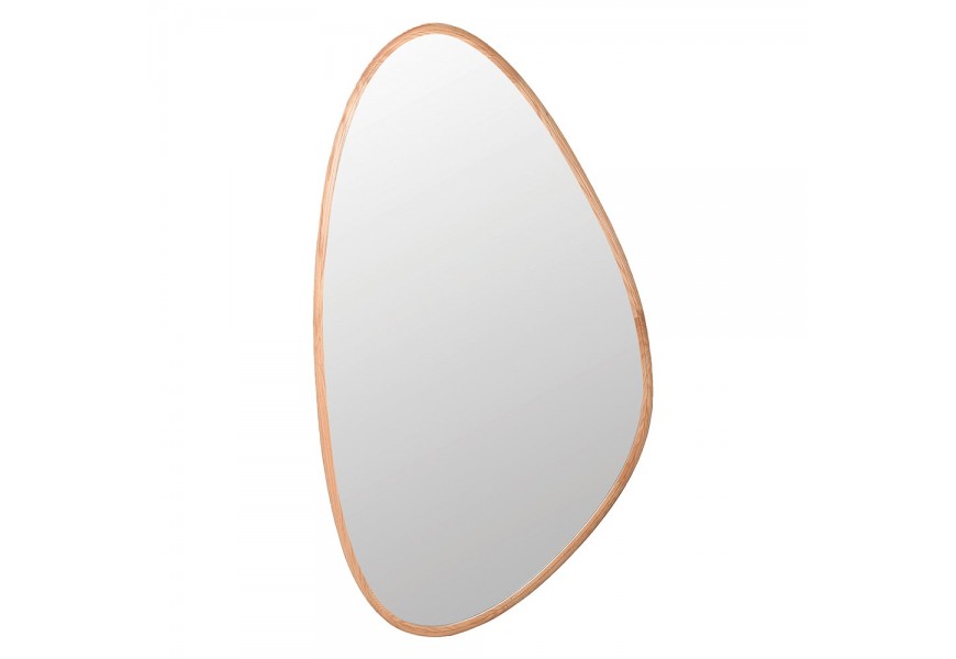 Moderné dizajnové nástenné zrkadlo Flaque asymetrického tvaru s dubovým rámom svetlá hnedá 126 cm