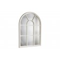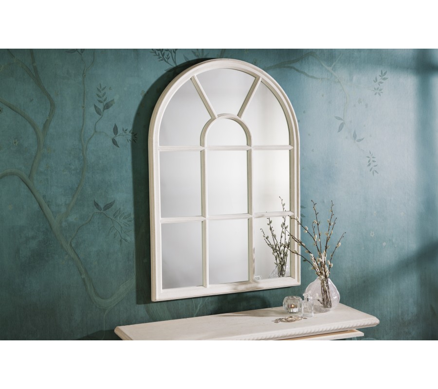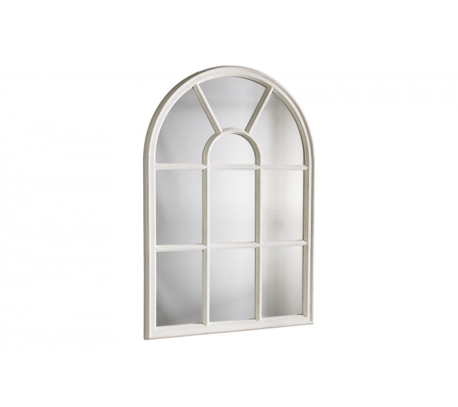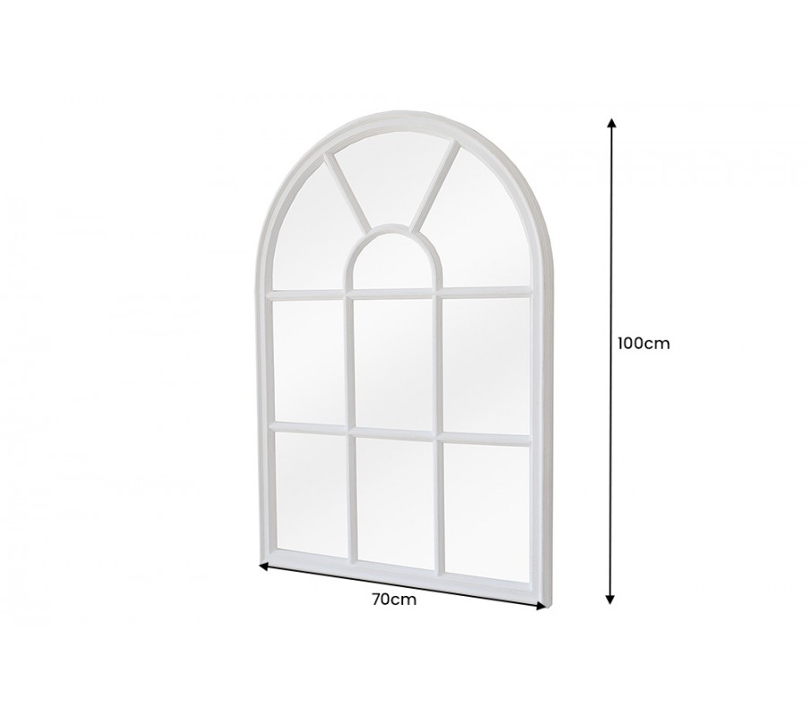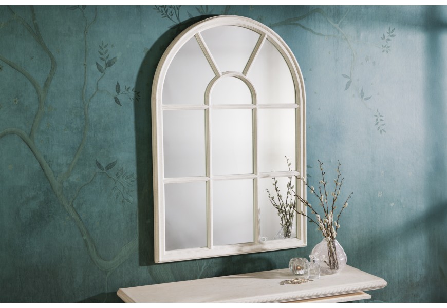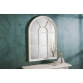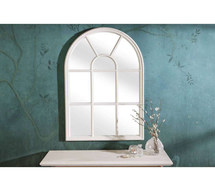 Nástenné zrkadlo Castillo s poloblúkovým dizajnom tabuľového okna s dreveným rámom s vintage bielym náterom 100 cm